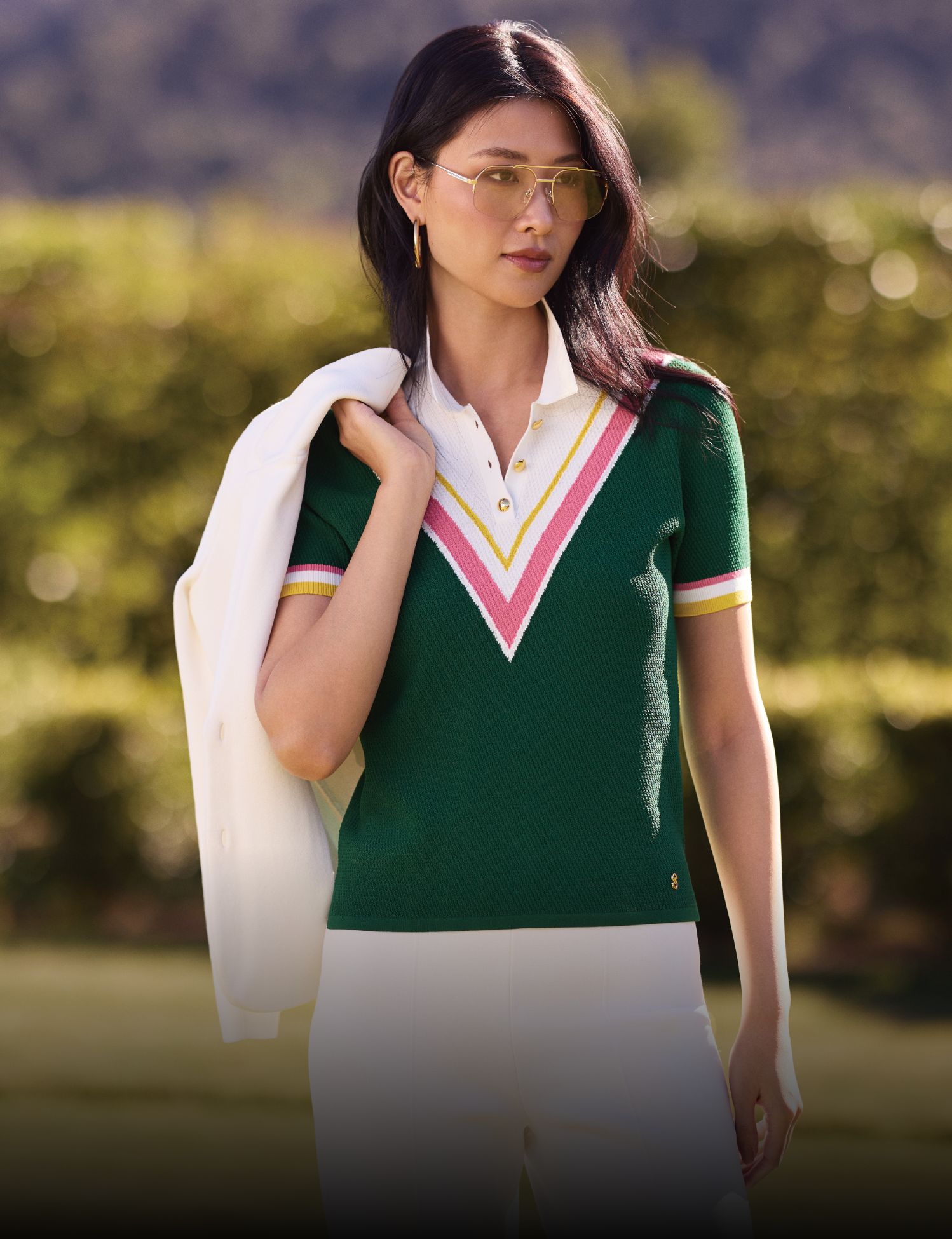 SHOP THE COLLECTIONMaking an iconic return, our luxury leisure line is back to elevate your game day style. Designed equally for elegance and ease, each piece goes confidently from the green to the stands and beyond.