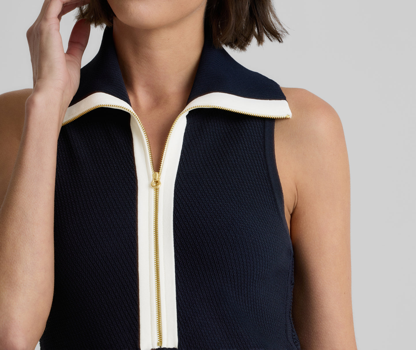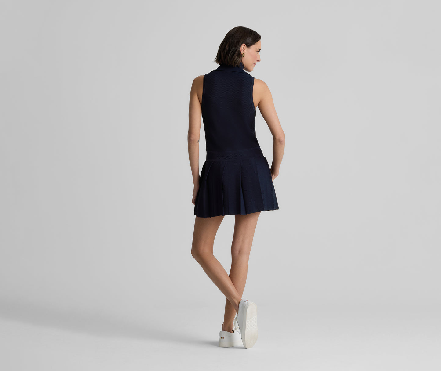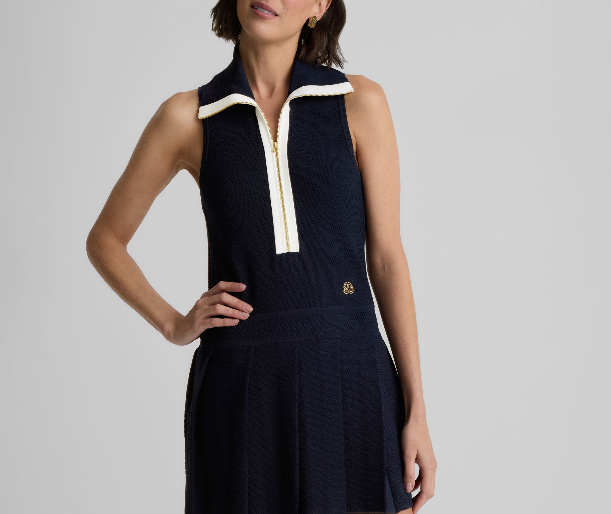 Created in an exclusive collaboration with influential golf brand Malbon, the Nelly is the epitome of sporty sophistication. This playful yet polished dress’ sleek sleeveless silhouette and swingy pleated skirt makes a statement whether or not you’re on the course, and the flexible Diagonal Stretch Knit offers a comfortable fit so you can move effortlessly through all your afternoon plans.