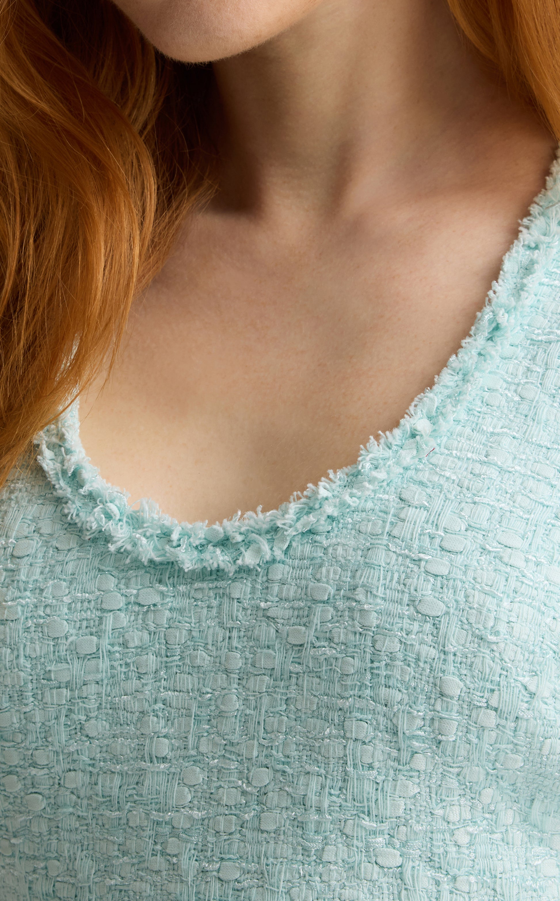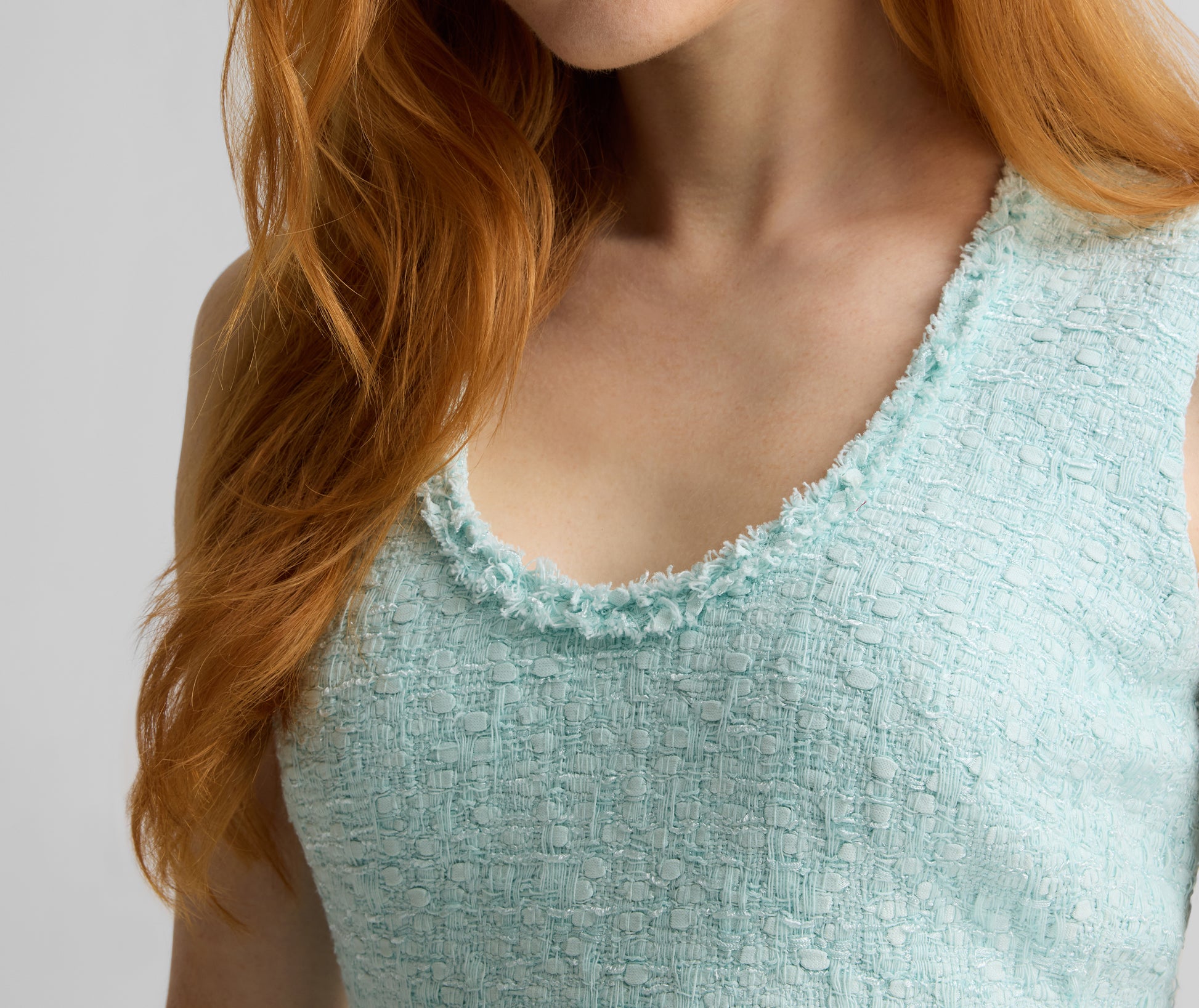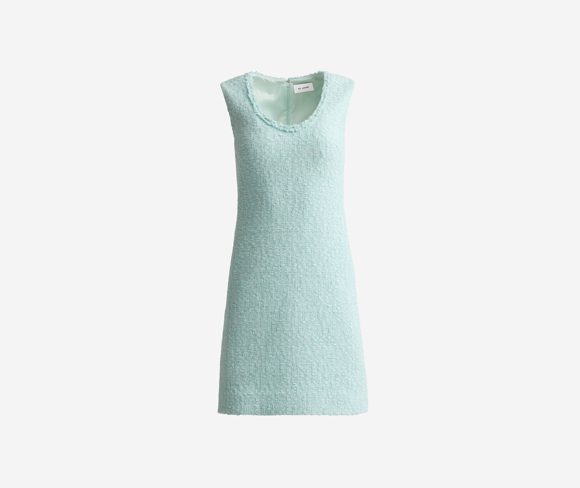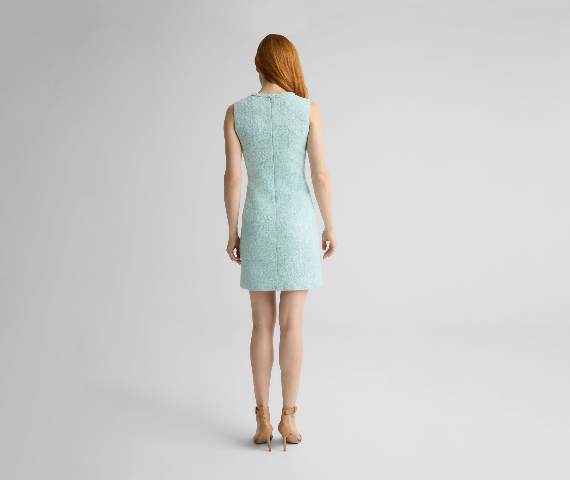 Quietly confident and timelessly chic, the Dorene is an elevated take on the classic sheath. Defined by our signature Canyon Tweed in serene Aqua, this dress features a flattering silhouette that makes a sophisticated statement on its own, but also pairs perfectly with the Clara Jacket as a coordinated set.