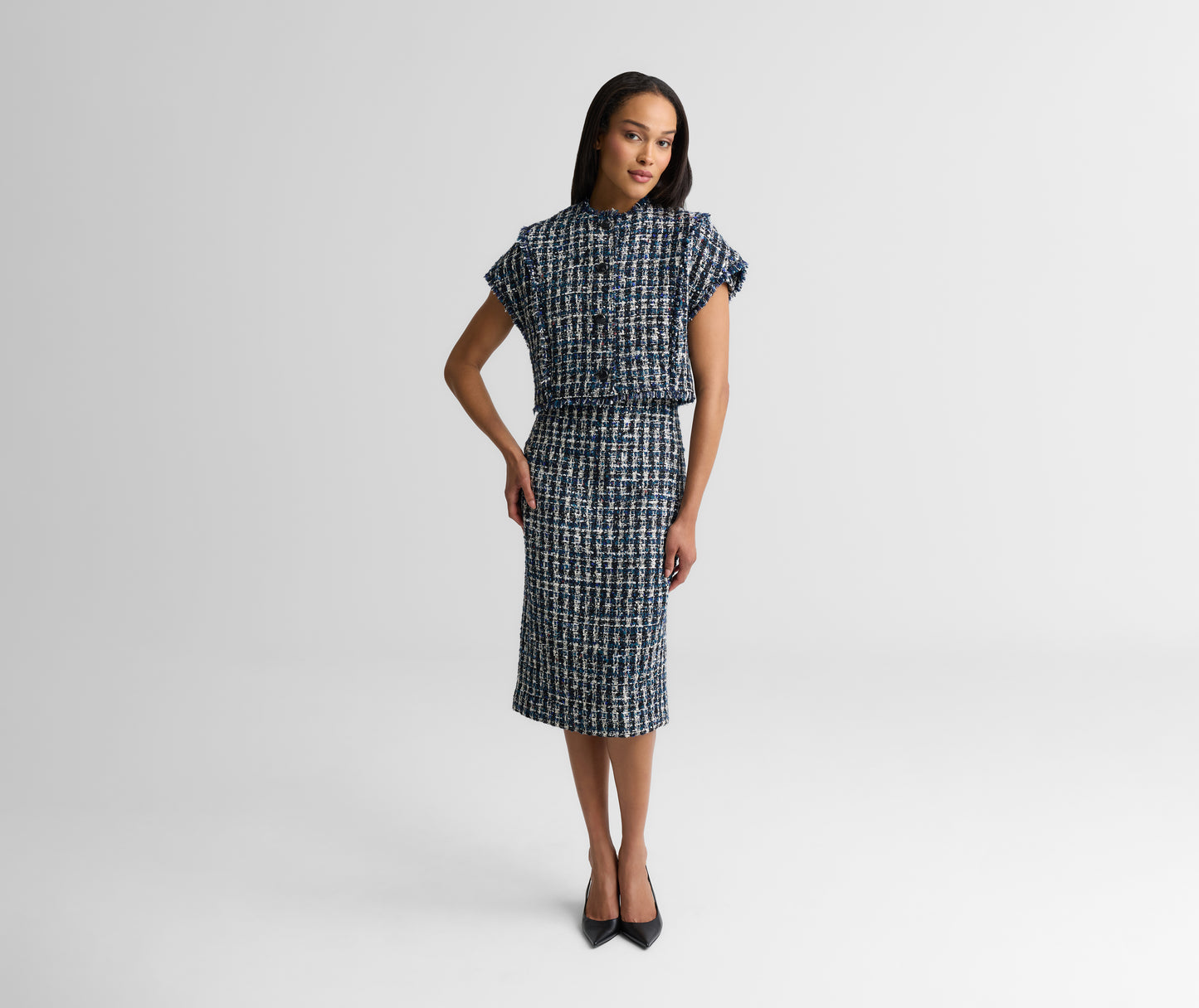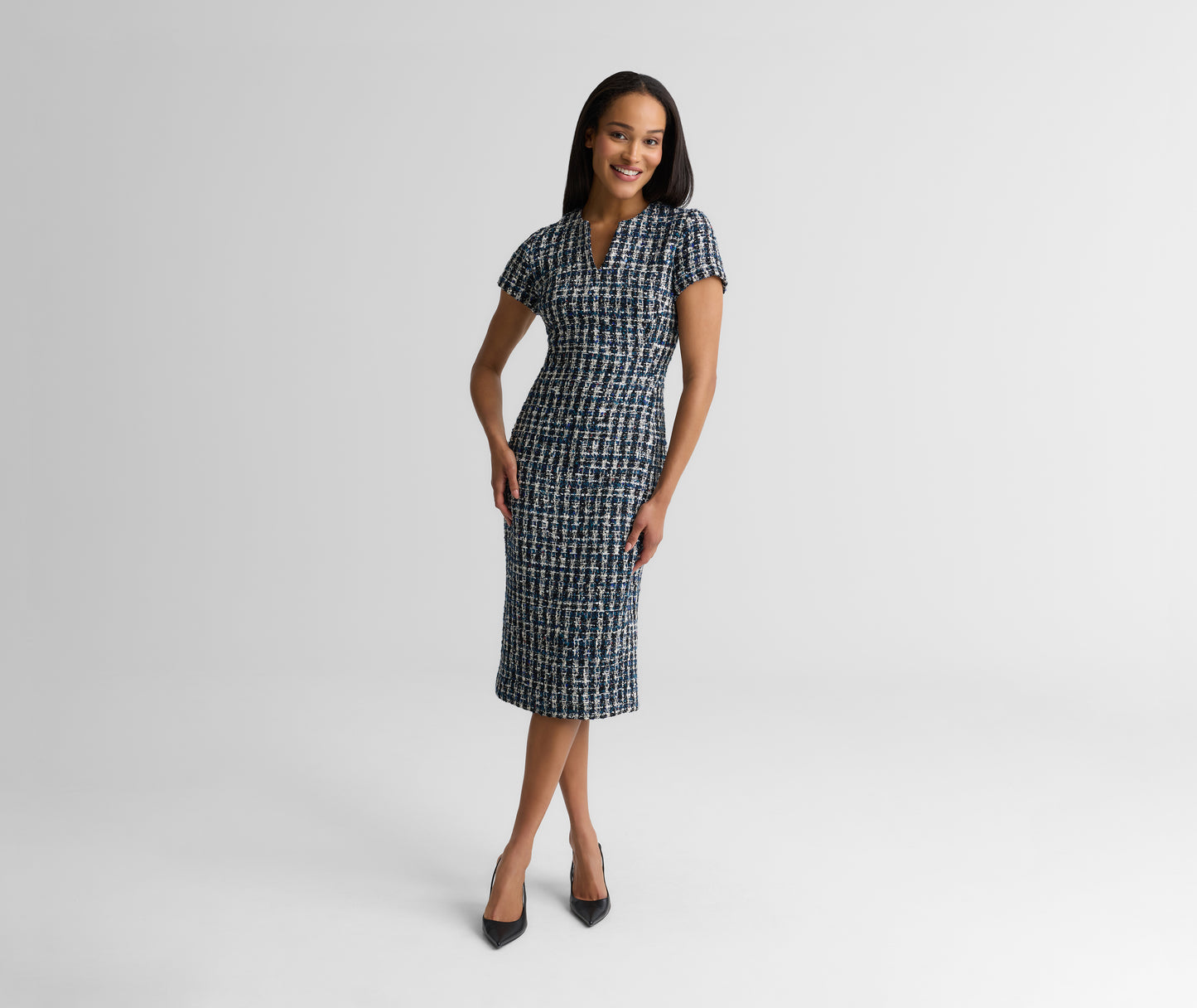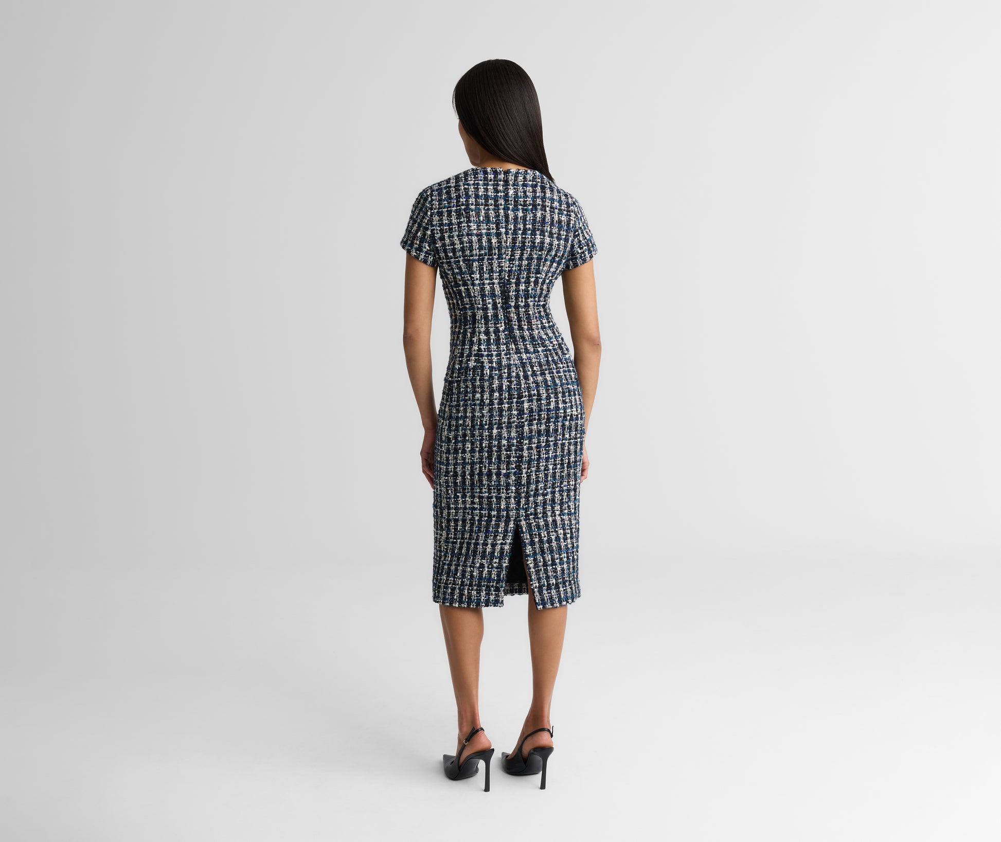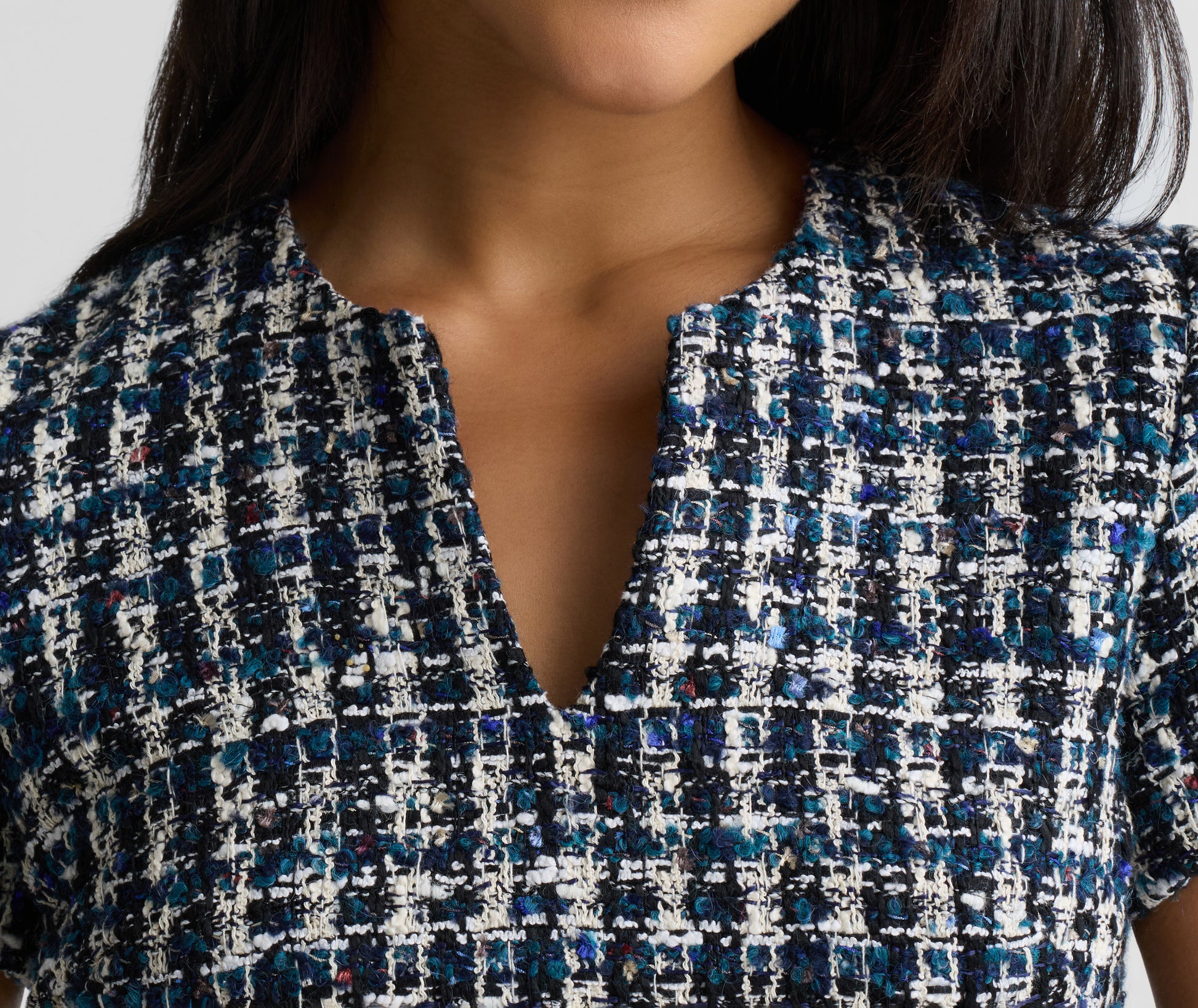 Understated yet undeniably refined, the Vicki makes a seamless transition from the office to elevated off-duty occasions. This timeless dress’ fitted silhouette and notched neckline showcase the rich texture of our vibrant Aspen Tweed, giving it endlessly wearable appeal.