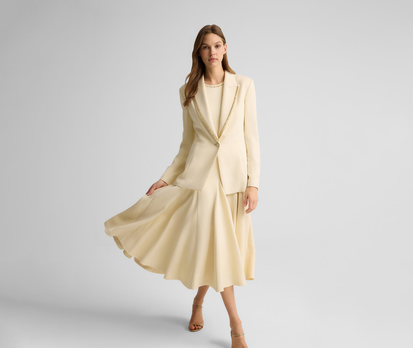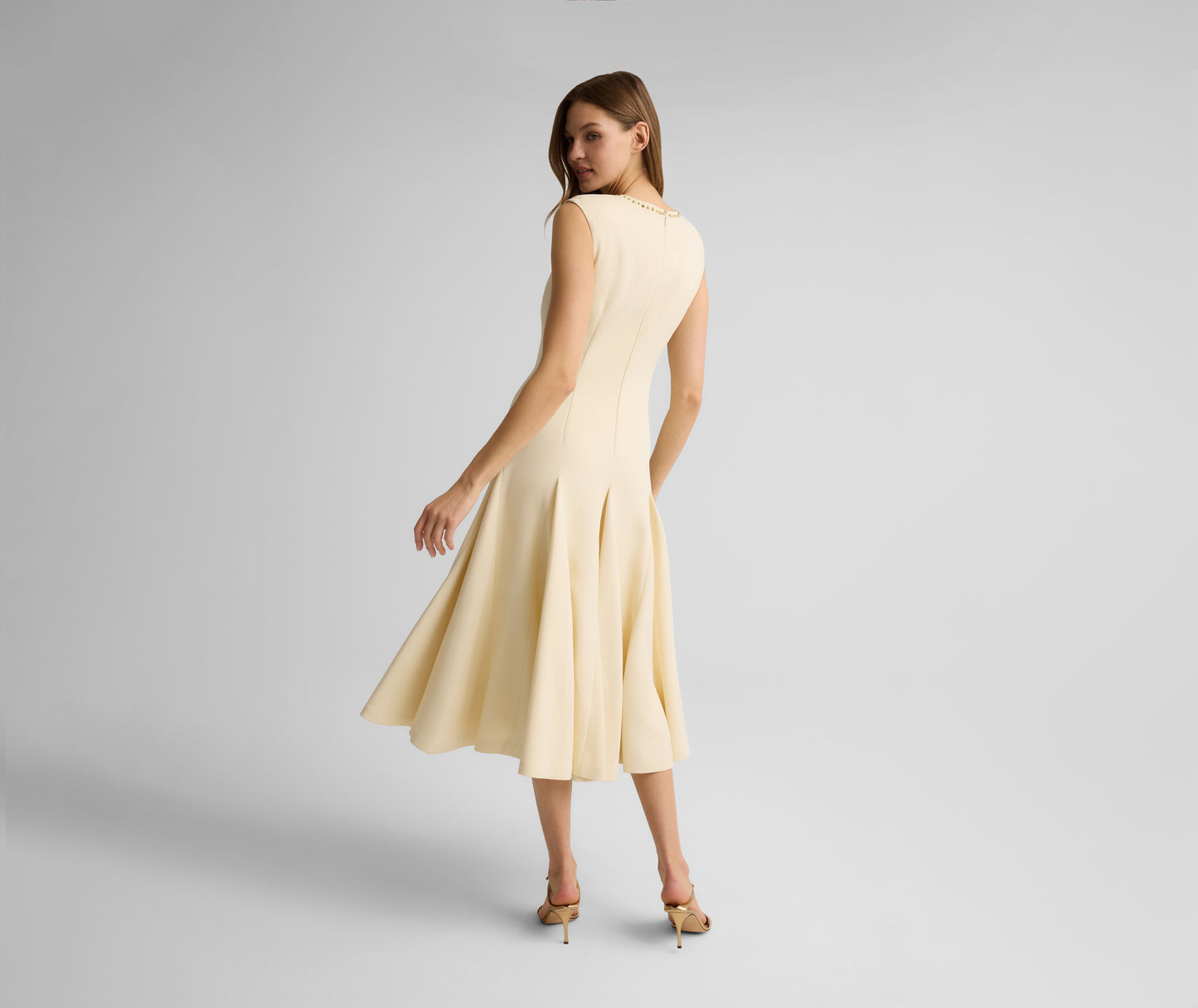A modern approach to classic evening wear, the Gracie Dress combines softness with subtle strength in every detail. Italian Viscose Blend gives this elegant dress its fluid drape while soft godets enhance your every move. Finished with delicate gold studs along the neckline, it makes a striking statement on its own or layered with the coordinating Elvie Jacket.
