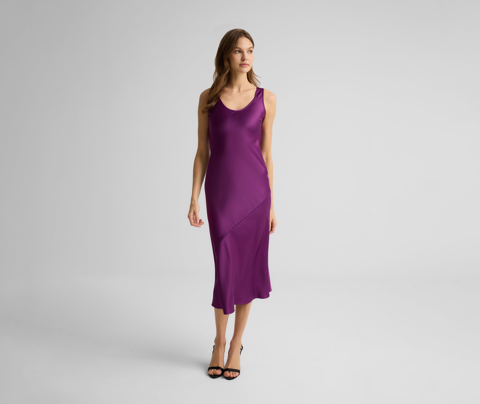 Cut from luxurious Liquid Satin, this bias-cut midi dress drapes elegantly over your curves for a sumptuous feel and flattering fit. The Sara's classic sleeveless silhouette and graceful neckline gives it timeless appeal as evening wear.