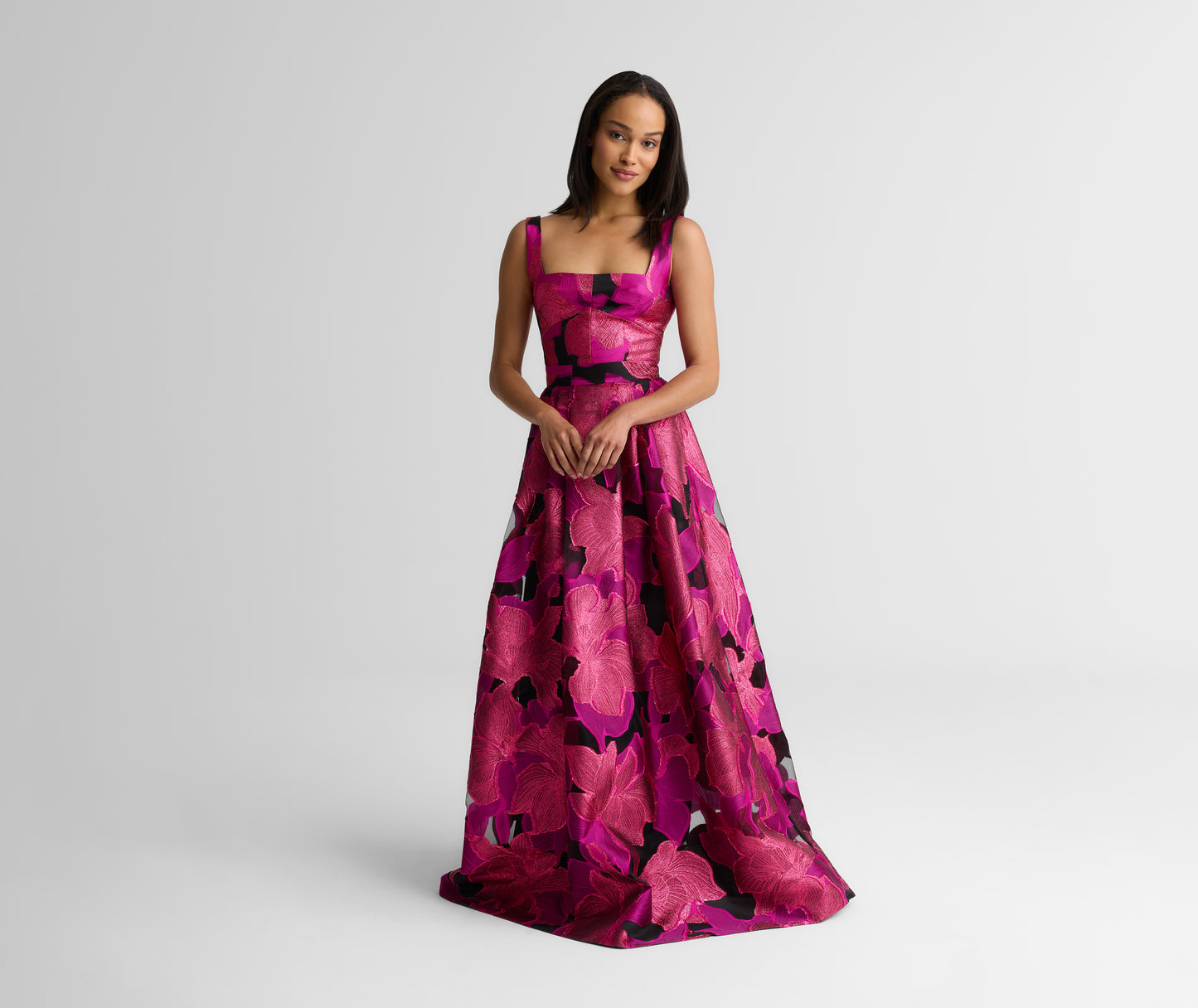 Balancing delicacy and drama, the Athena was made to elevate all your elegant moments. Crafted from airy, vibrant Floral Organza for presence and volume, this glamorous gown features a flattering square neckline as well as pocked for an effortless sensibility. Layer with the Georgia Wrap for coordinated coverage.