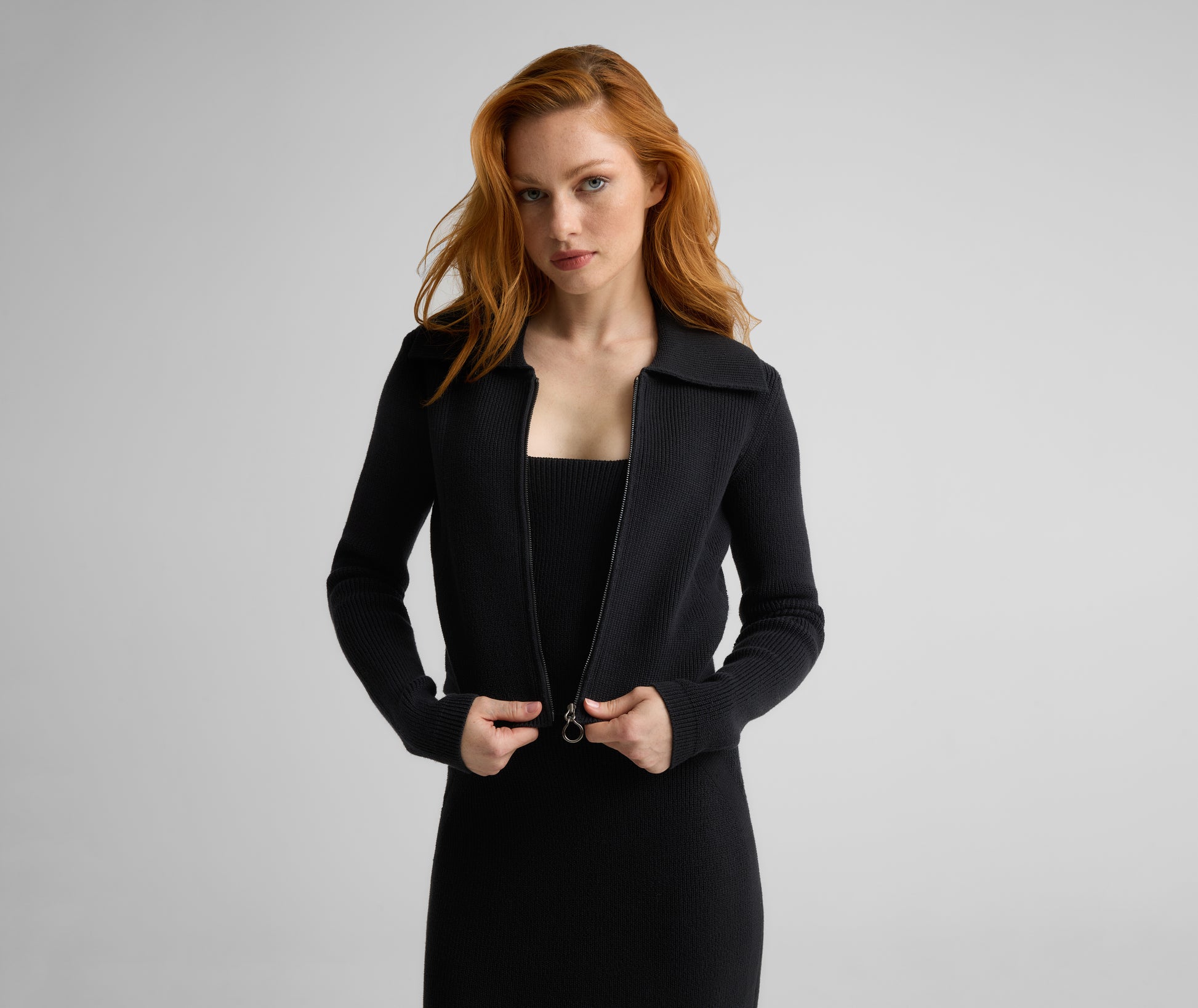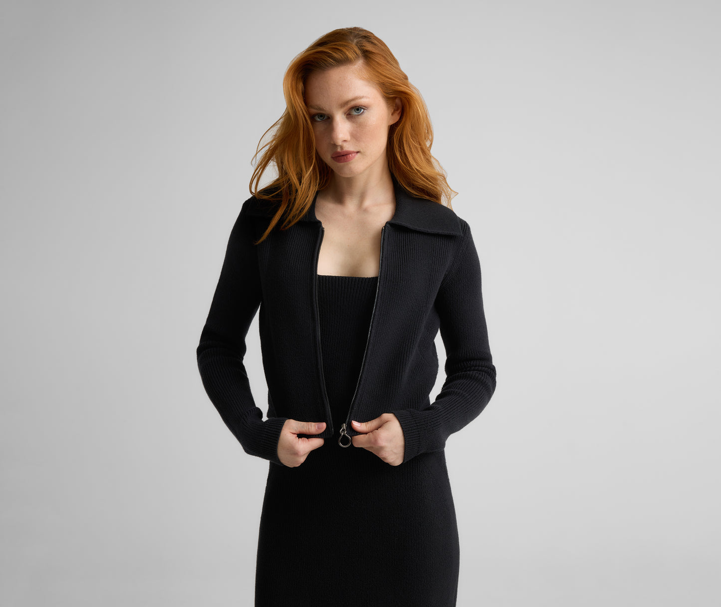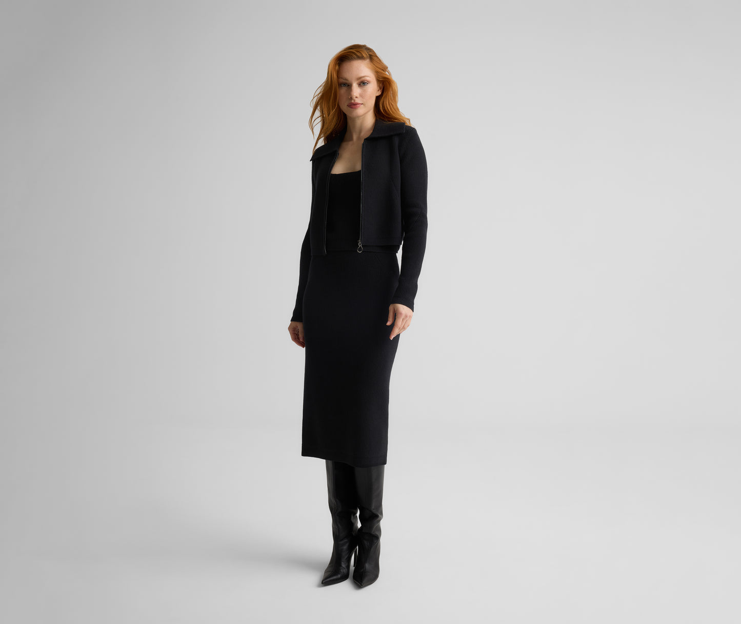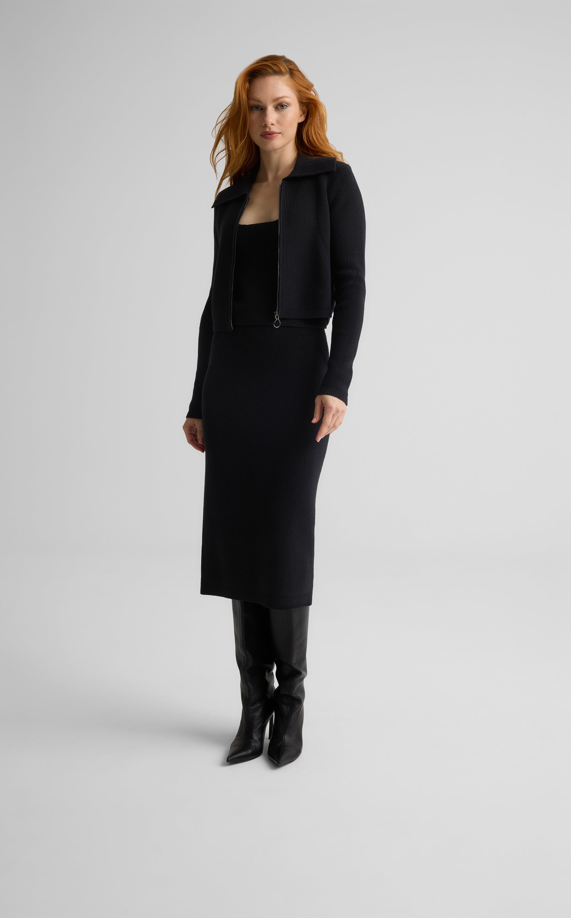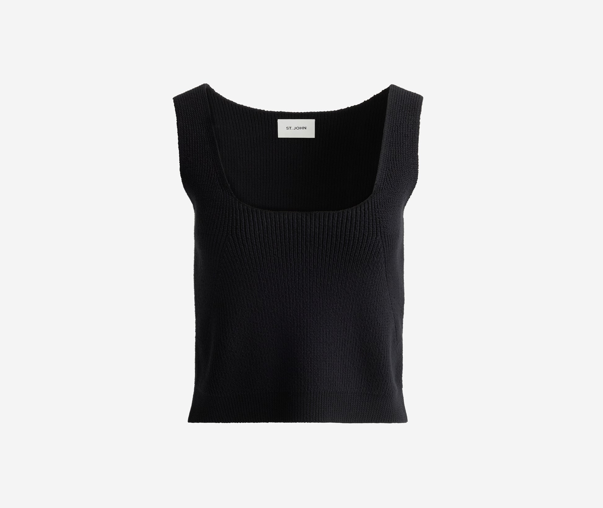 Refined on its own yet perfect for layering, the Abigail combines classic design details with comfortable fabric and fit. Cut to flatter with its scoop neckline and flexible ribbed knit in timeless Black, this sleek shell top will be a go-to piece in your everyday wardrobe. Wear it a multitude of ways, including as a matching set with our Rhea Midi Skirt for a minimalist, monochromatic effect.
