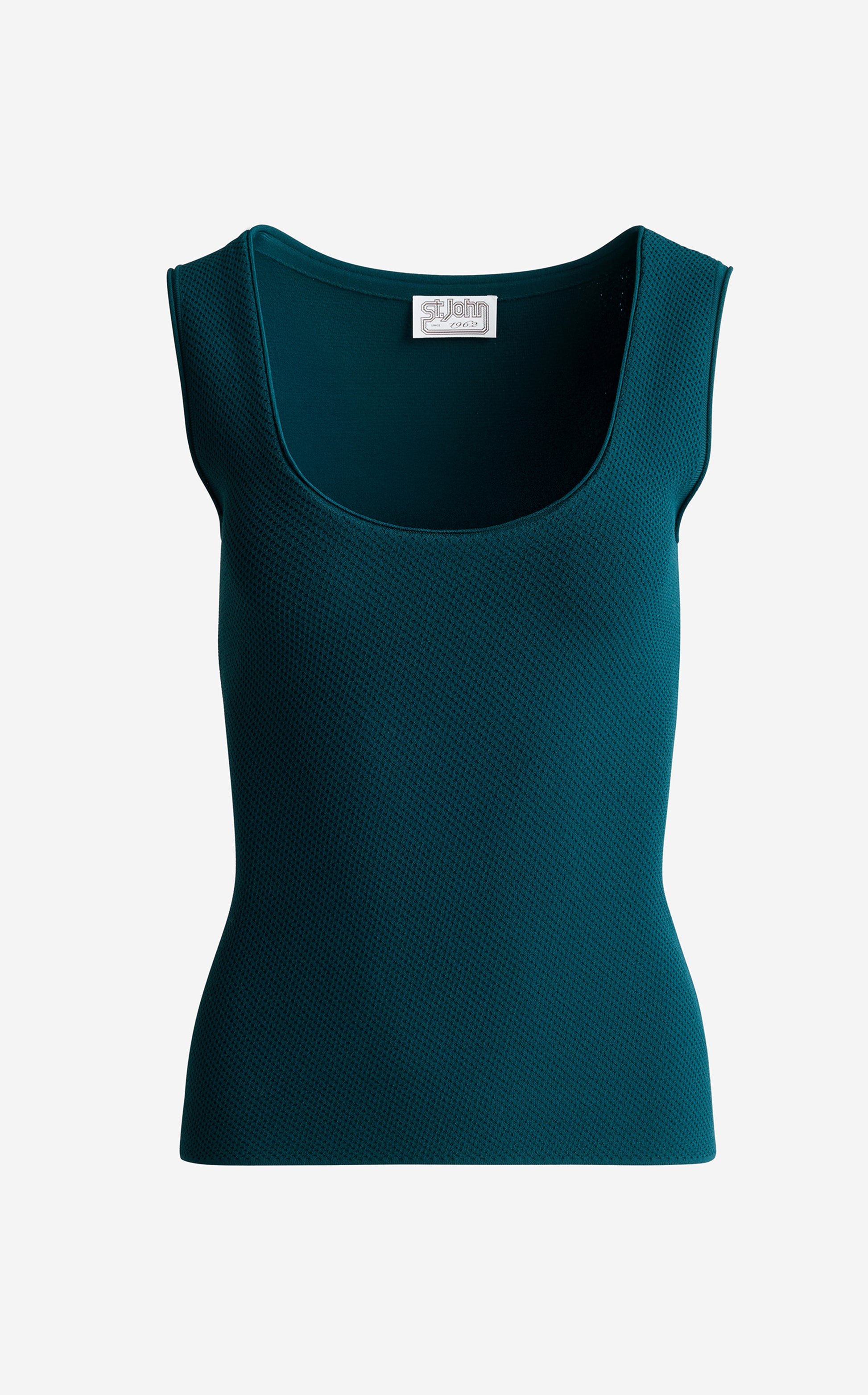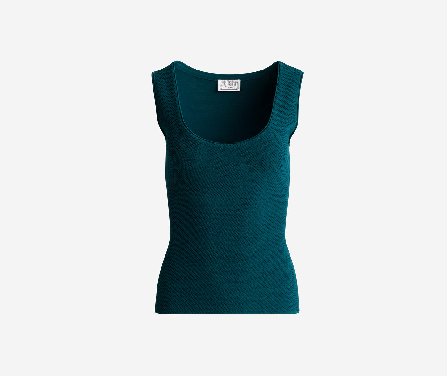 Cut from our iconic Venezia Knit in tourmaline, the Amy offers a clean, structured silhouette with just the right amount of stretch. It contours with ease, holding its shape while moving effortlessly with you. Minimal yet memorable, it’s the kind of piece that quietly elevates every look—on its own or under a jacket
