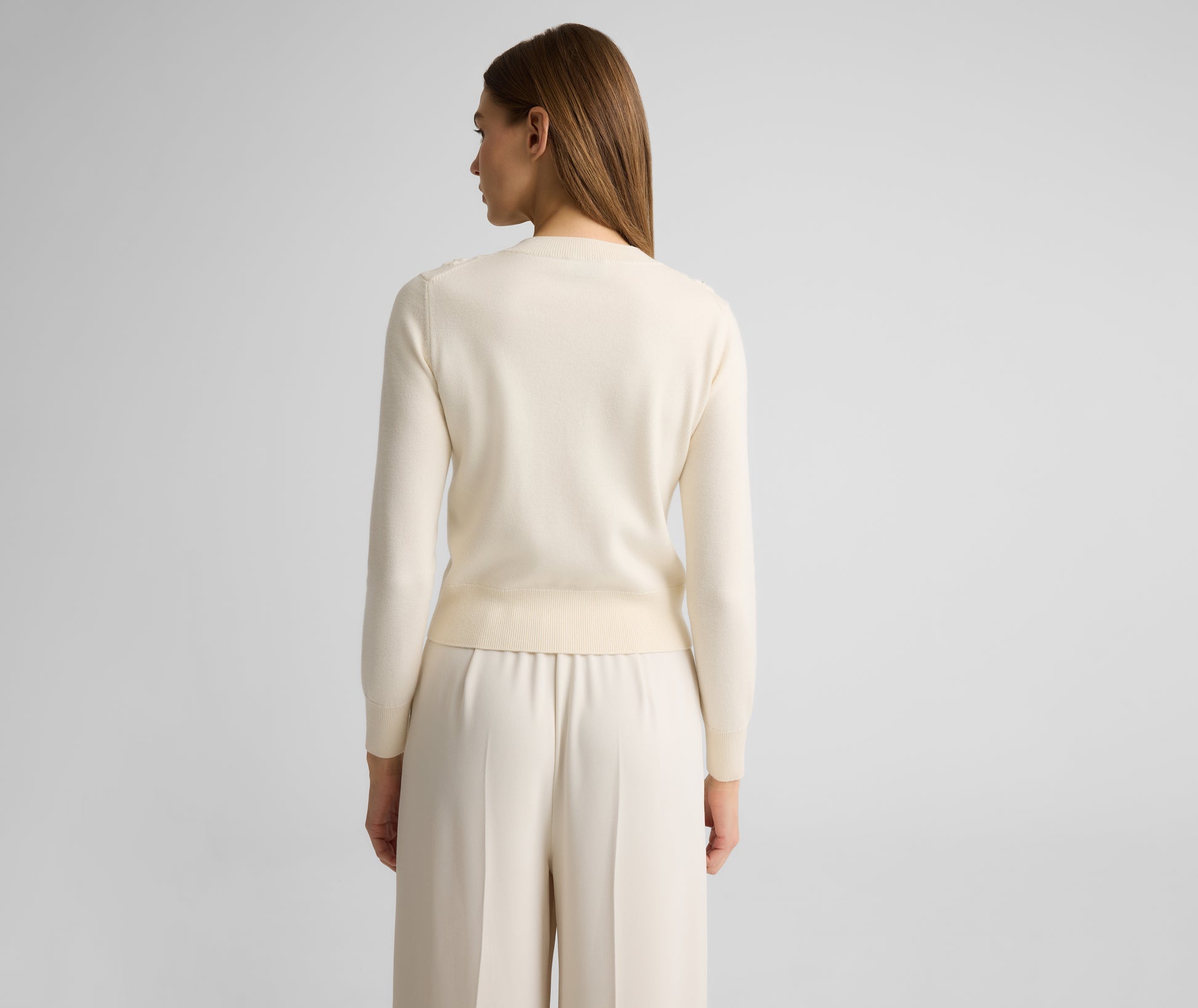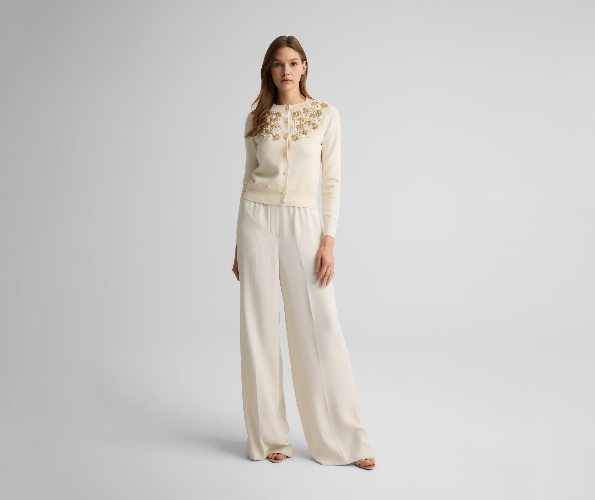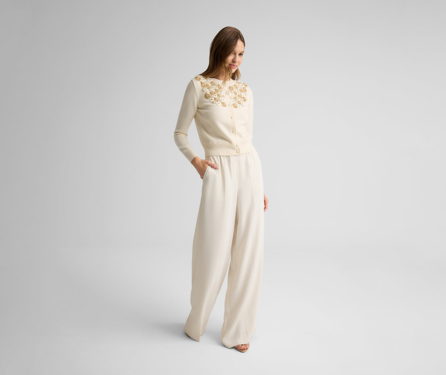 A cardigan like no other in your closet, the Seraphina was meticulously crafted to elevate everything from your go-to denim to sleek pencil skirts and beyond. Made from a whisper soft wool silk blend in versatile Ecru with delicate embroidery and hand beading in an intricate floral motif, this clean and classic silhouette shines with every thoughtful detail.