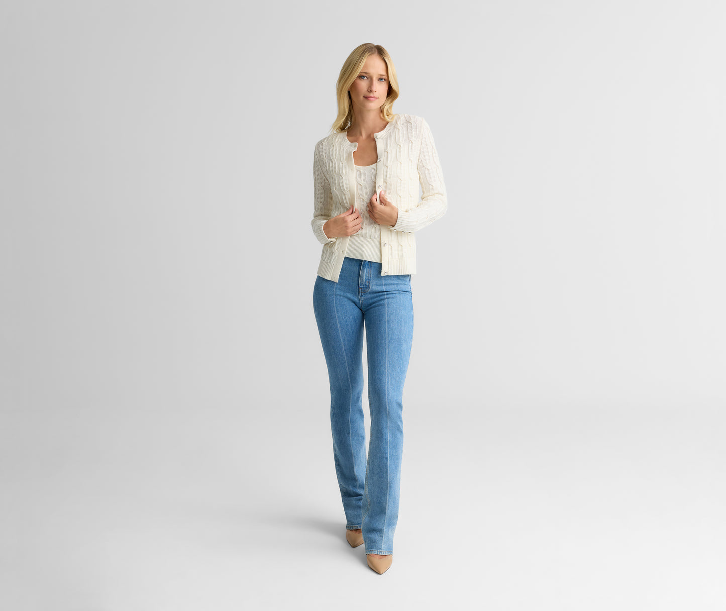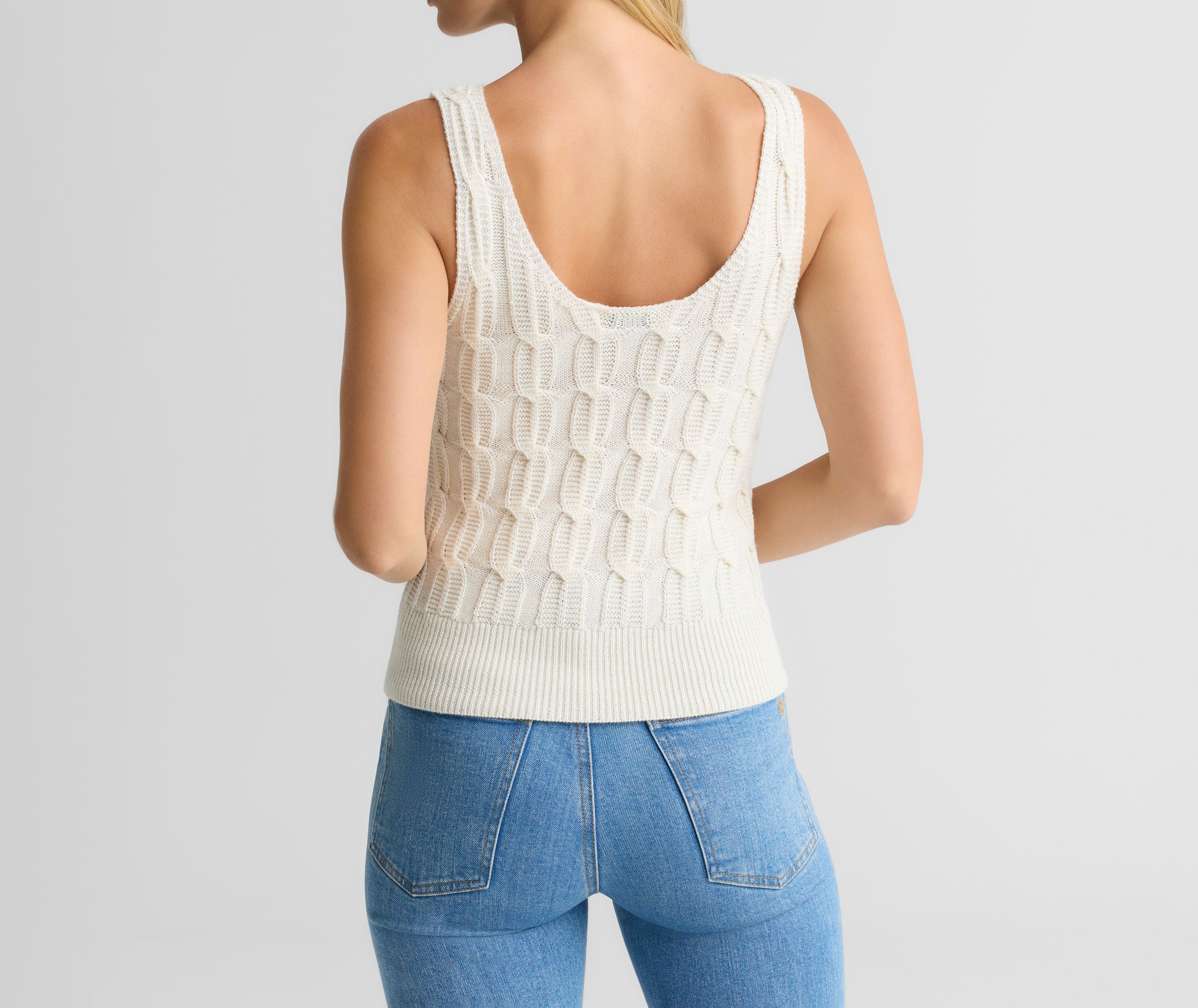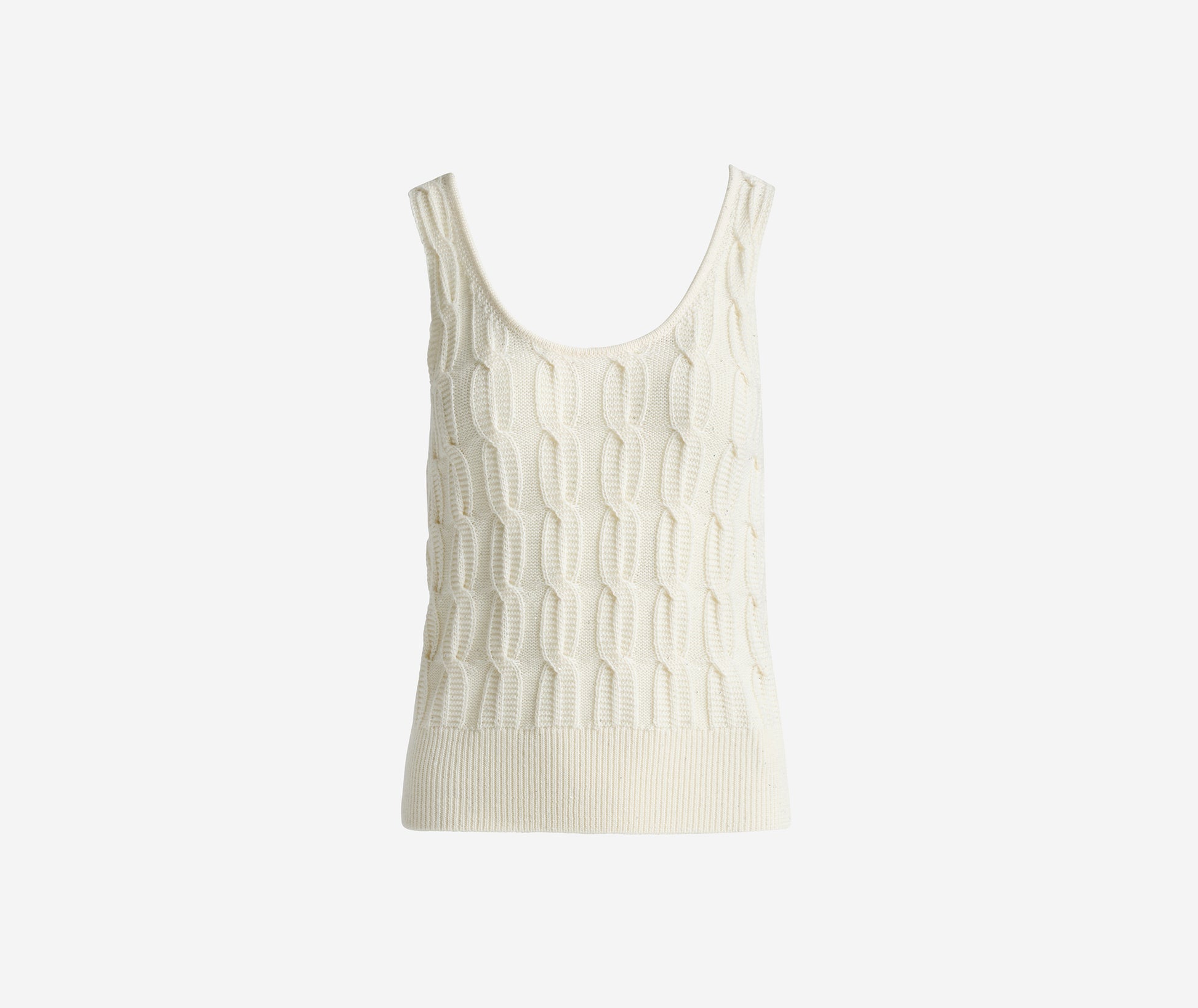 Subtly textured and utterly sophisticated, the Diana Shell in shimmering Merino cable knit shines all on its own, but also makes an elegant base layer. Pair with the Dawn Cardigan to create a polished twin set or denim and leather jackets to add a hint of soft sheen to any look.