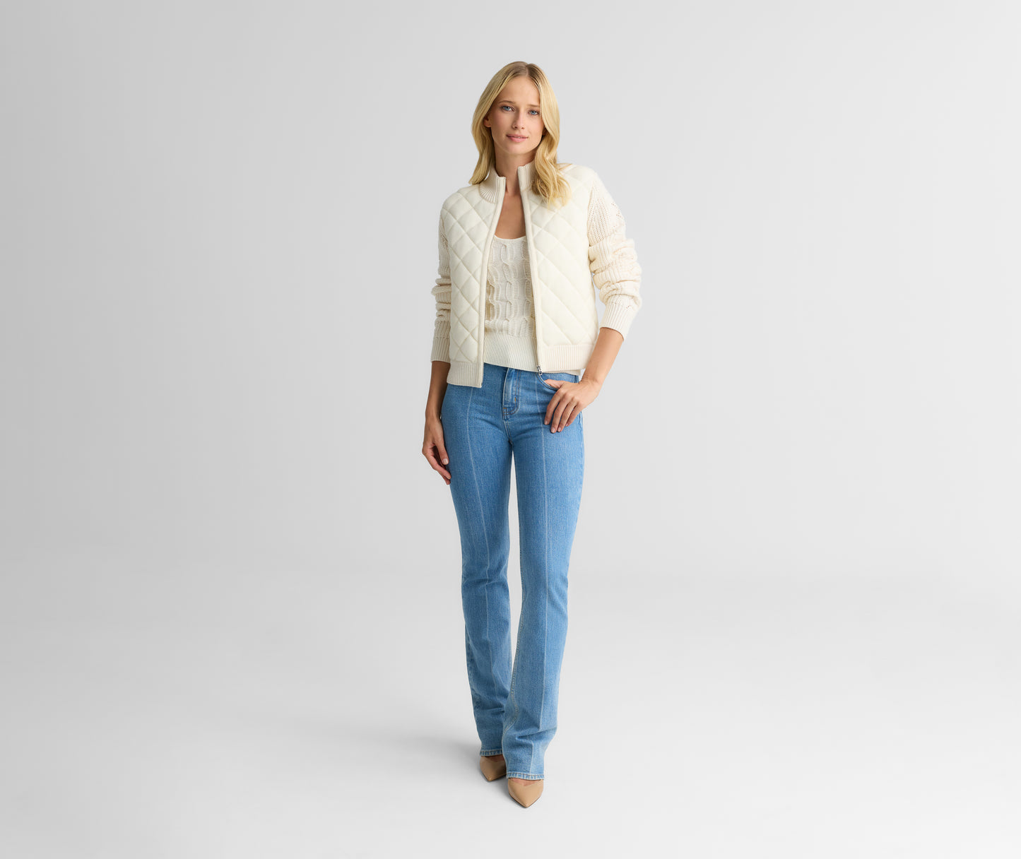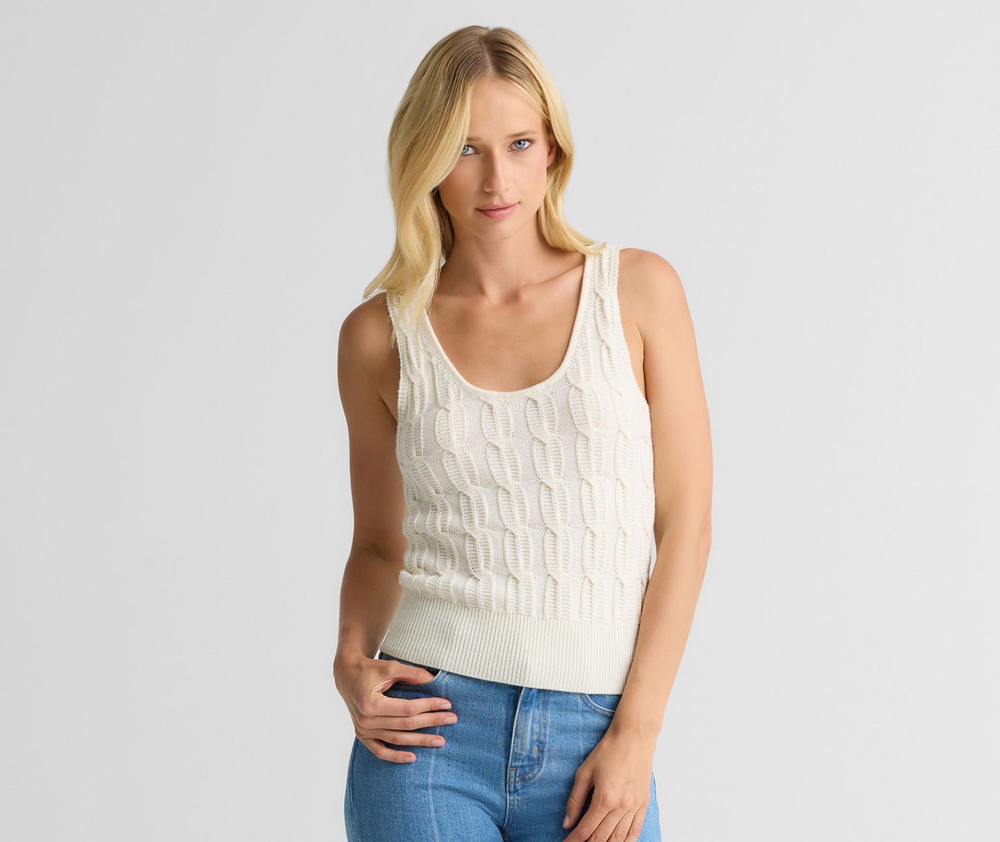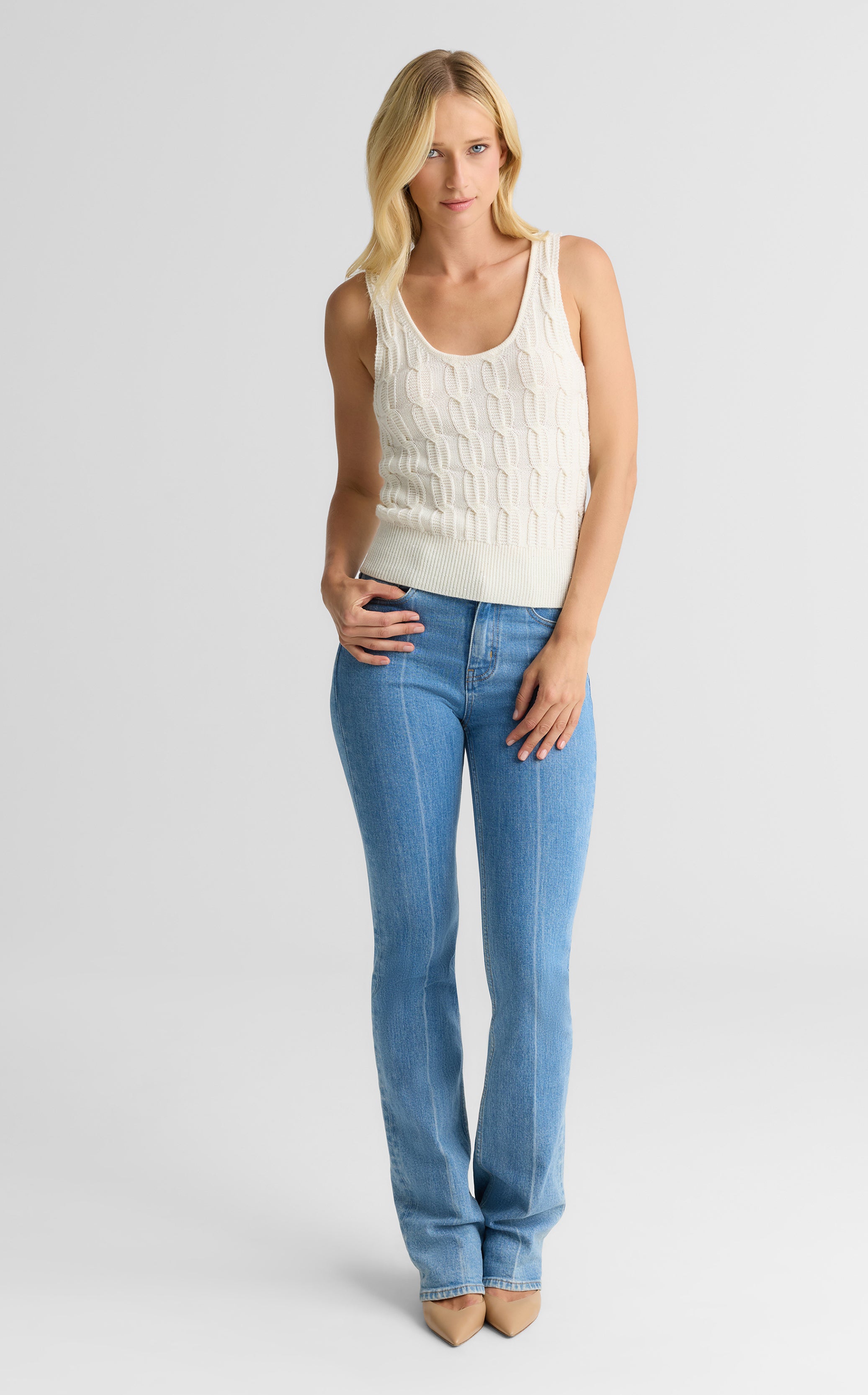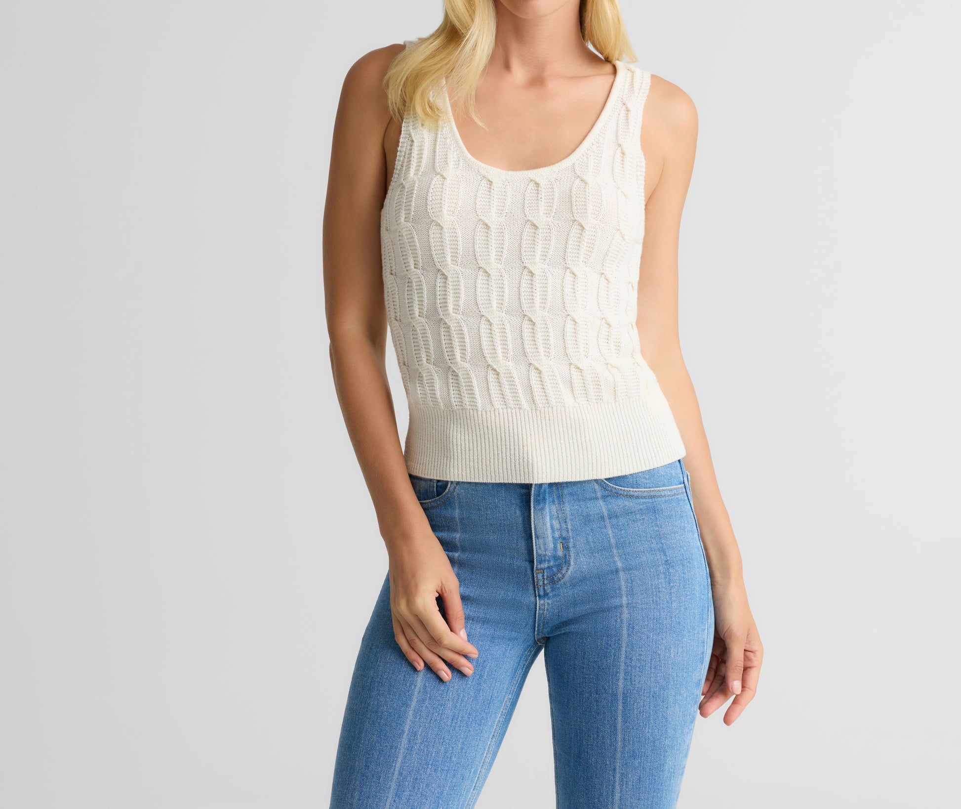 Subtly textured and utterly sophisticated, the Diana Shell in shimmering Merino cable knit shines all on its own, but also makes an elegant base layer. Pair with the Dawn Cardigan to create a polished twin set or denim and leather jackets to add a hint of soft sheen to any look.