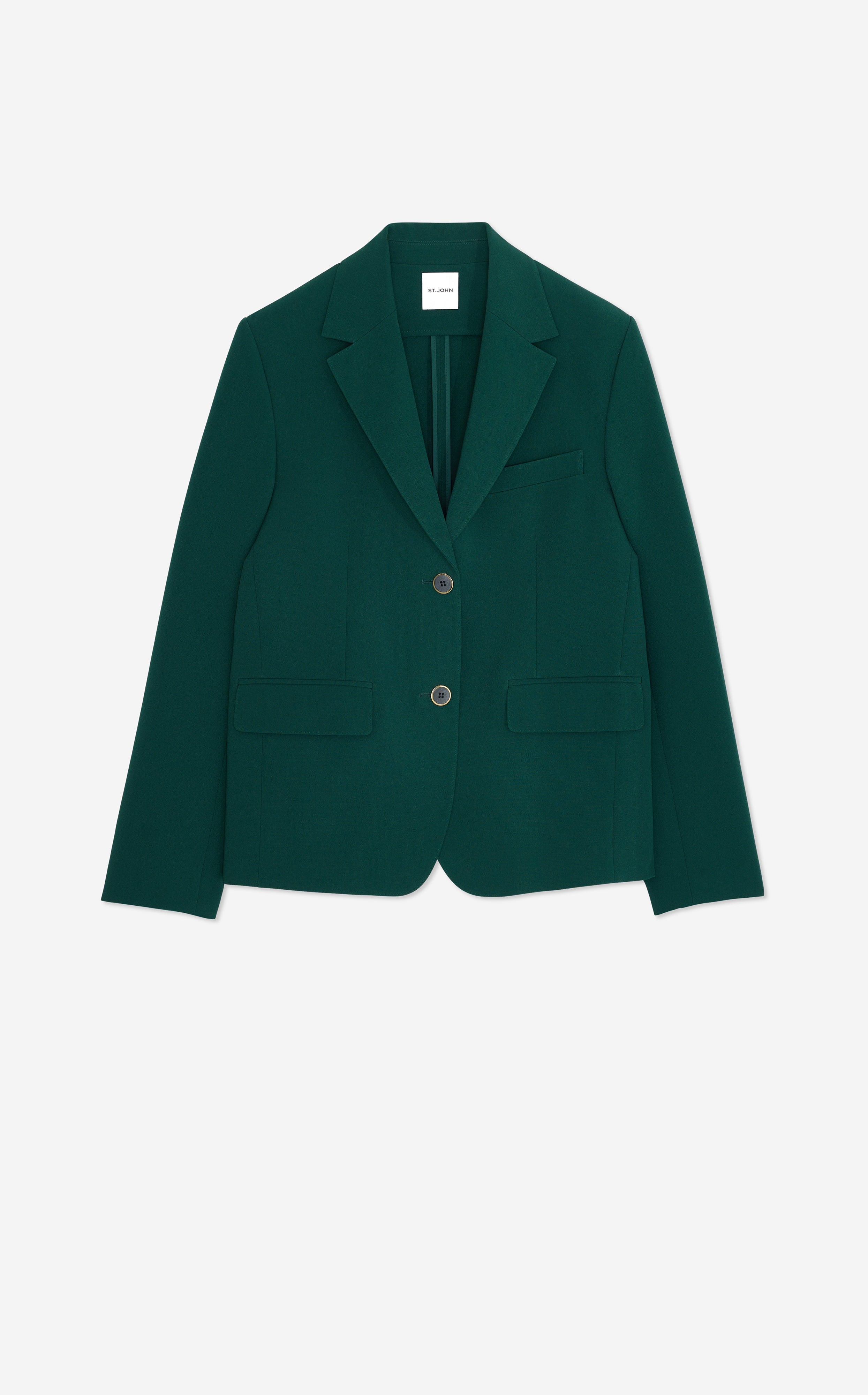 Embrace color with this stretch cady knit suiting jacket, an impeccably tailored, timeless style with pockets and a notch collar.
