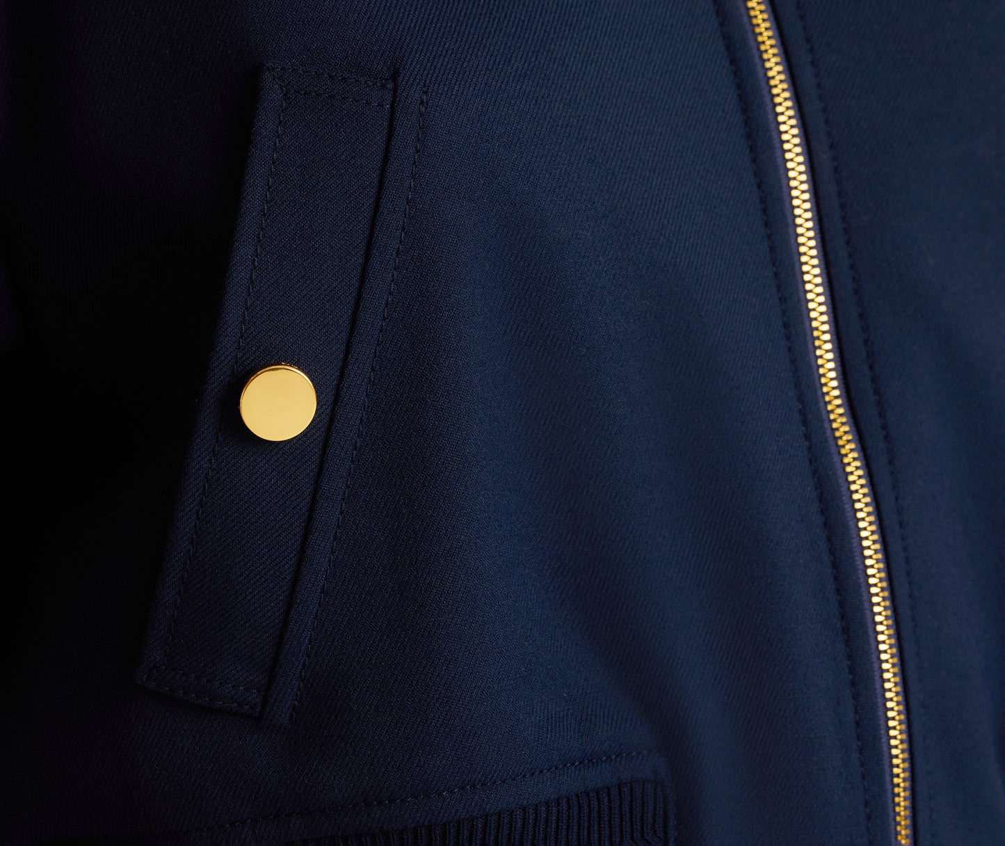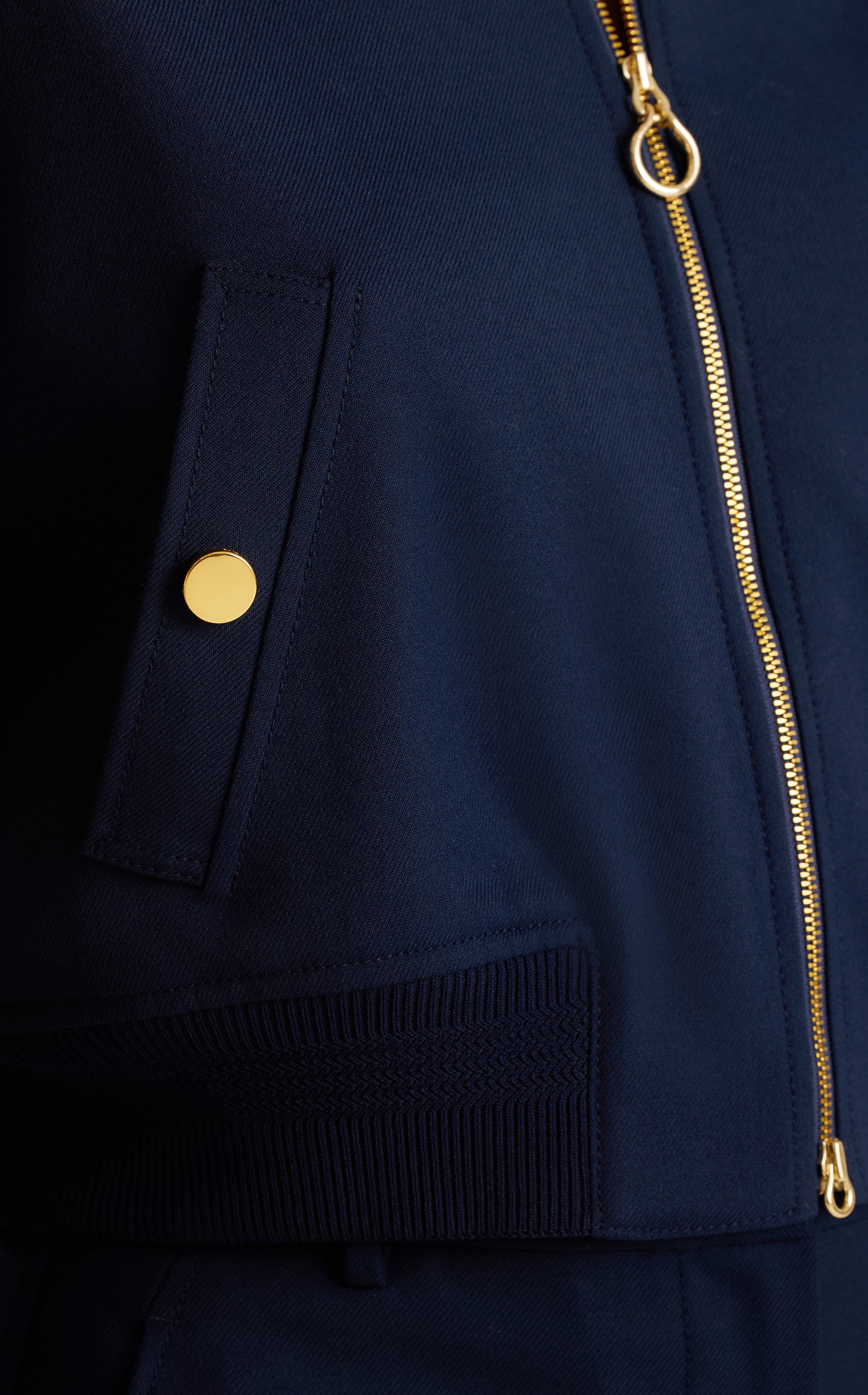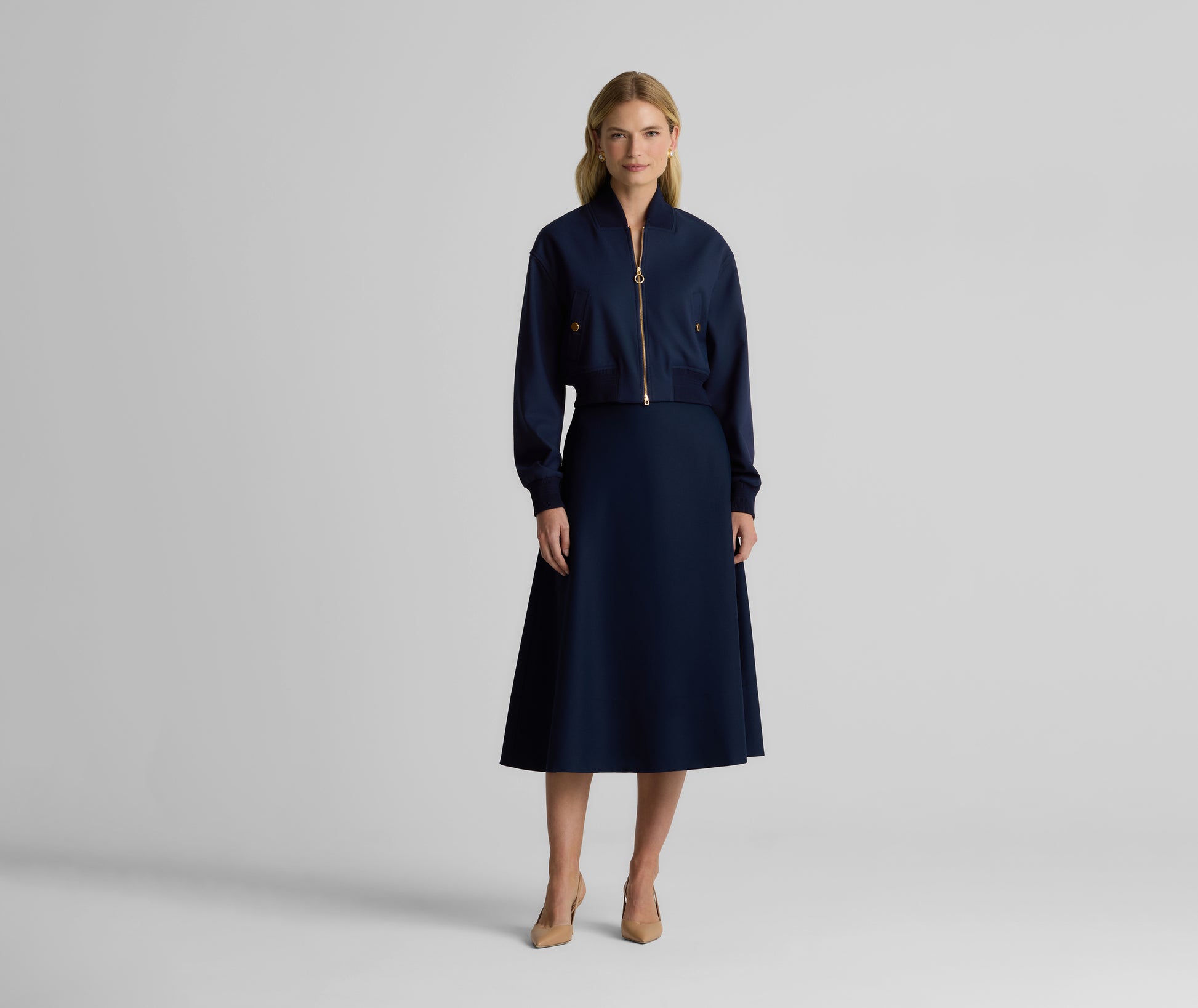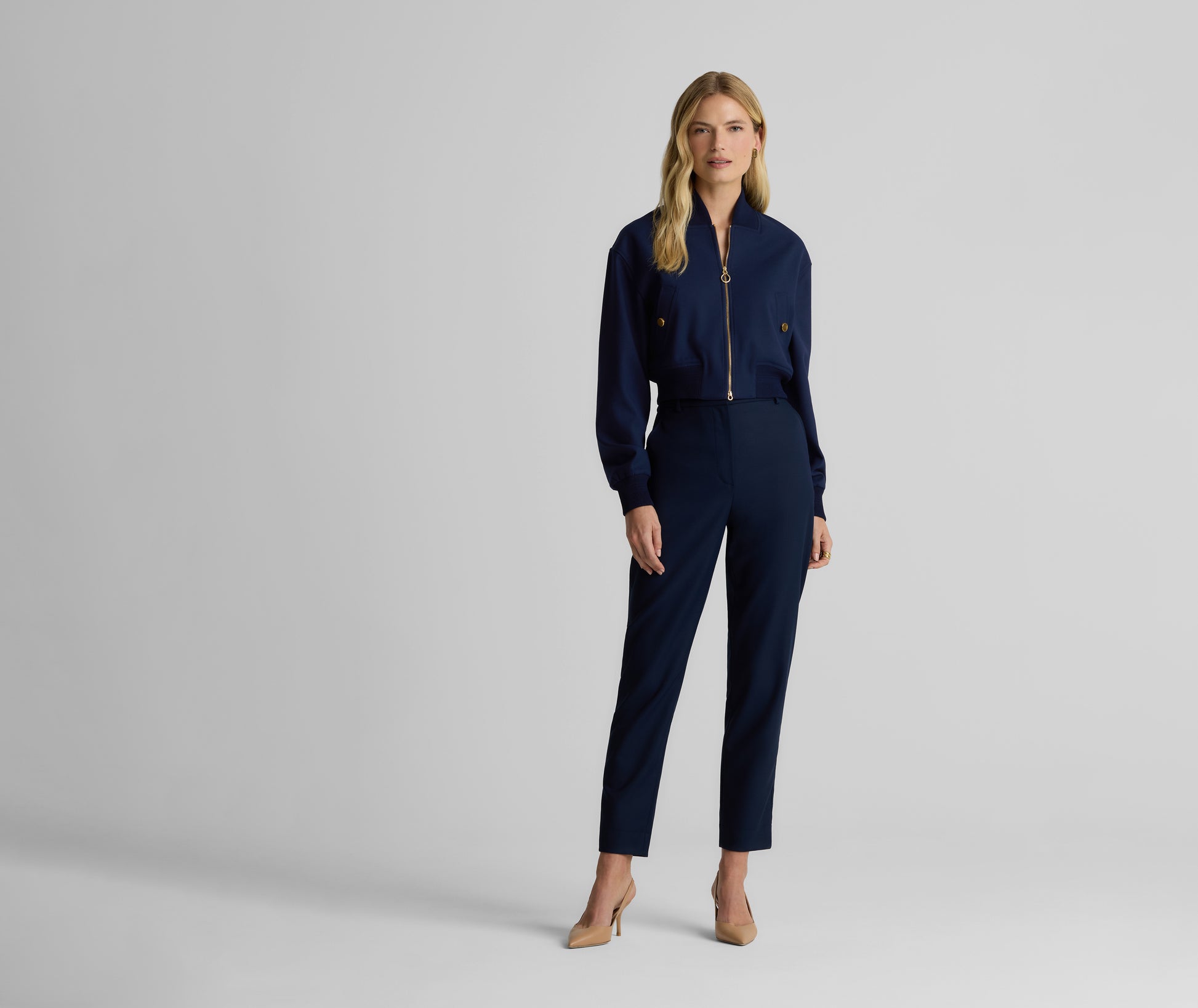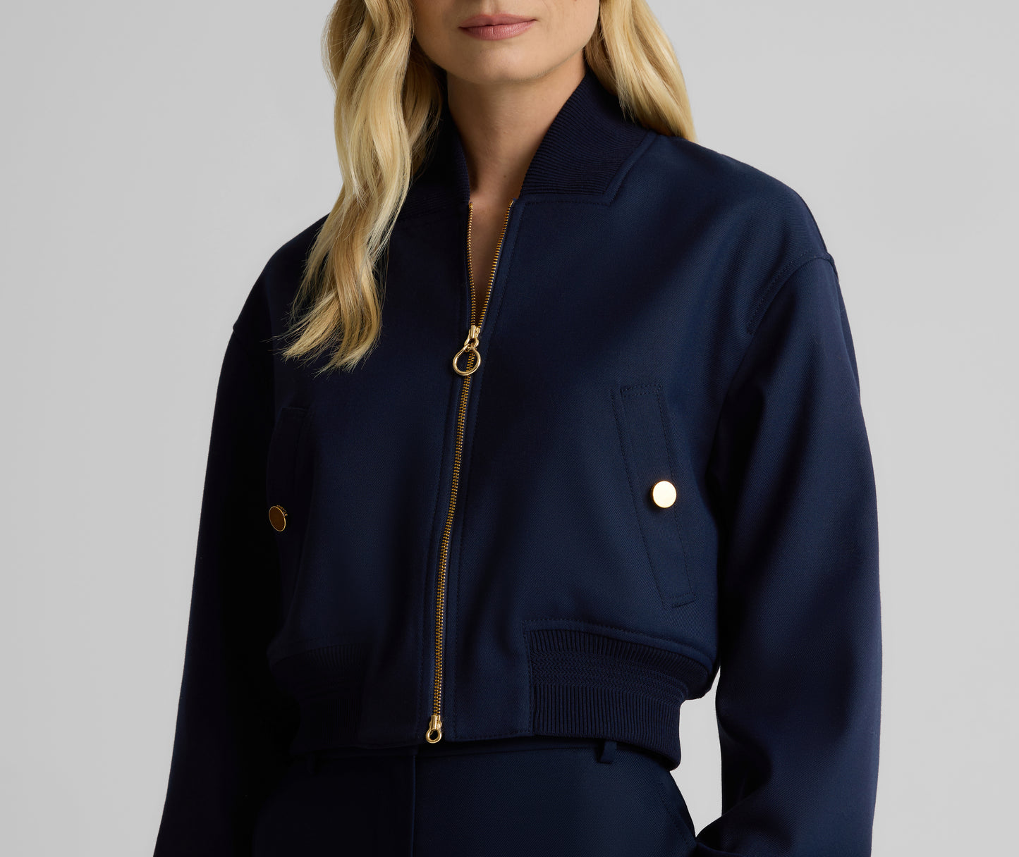 Slightly sporty details like a ribbed collar and cuffed sleeves give this seasonless jacket its laid-back feel, while the smooth Stretch Gabardine adds polished elegance. Dressed up or down, it’s the ultimate lightweight layer for everyday wear.