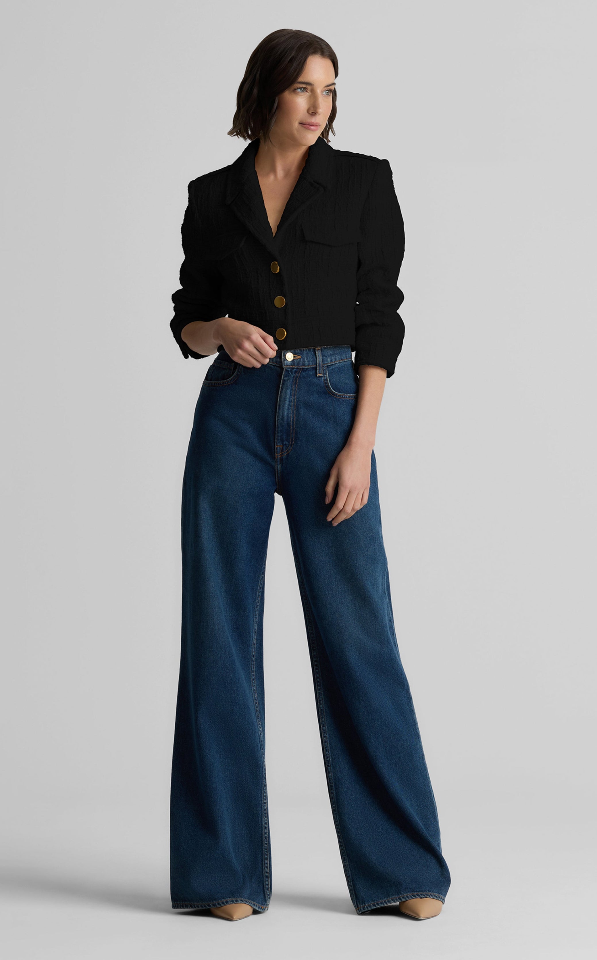 A must-have for the sophisticated woman’s wardrobe, the Avery Jacket is made from our richly textured Foundry Tweed. In timeless Black, this elegant staple is neutral enough to pair with everything from denim to coordinated dresses while still making a statement in any setting.