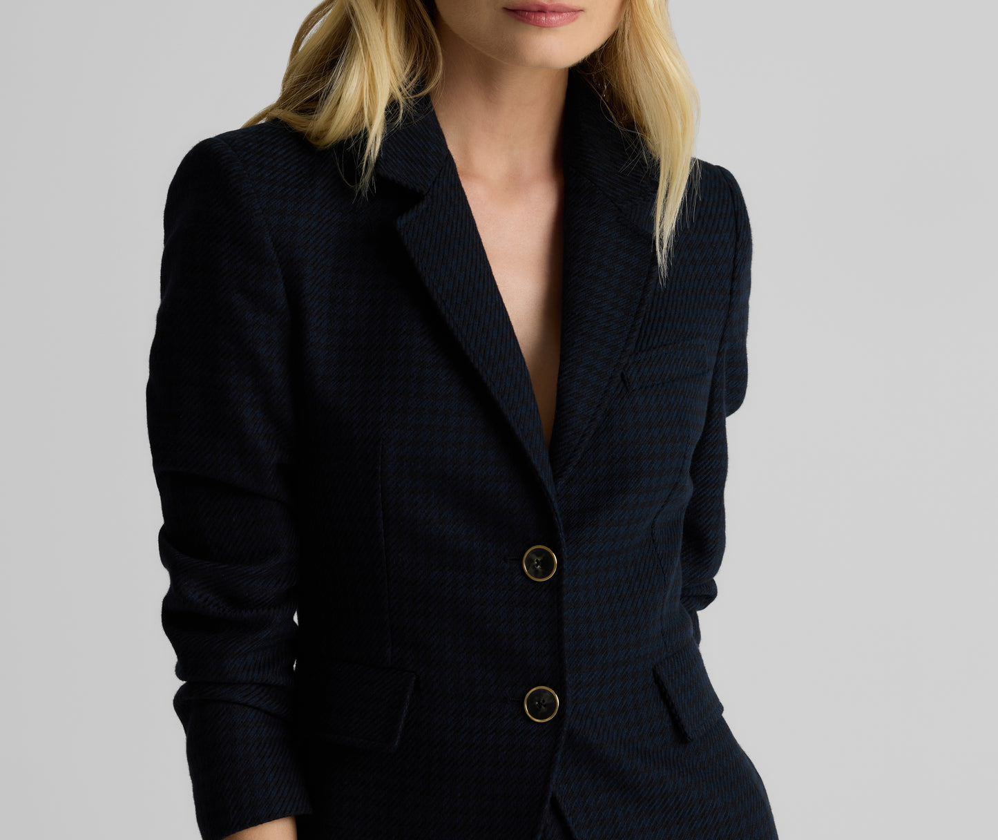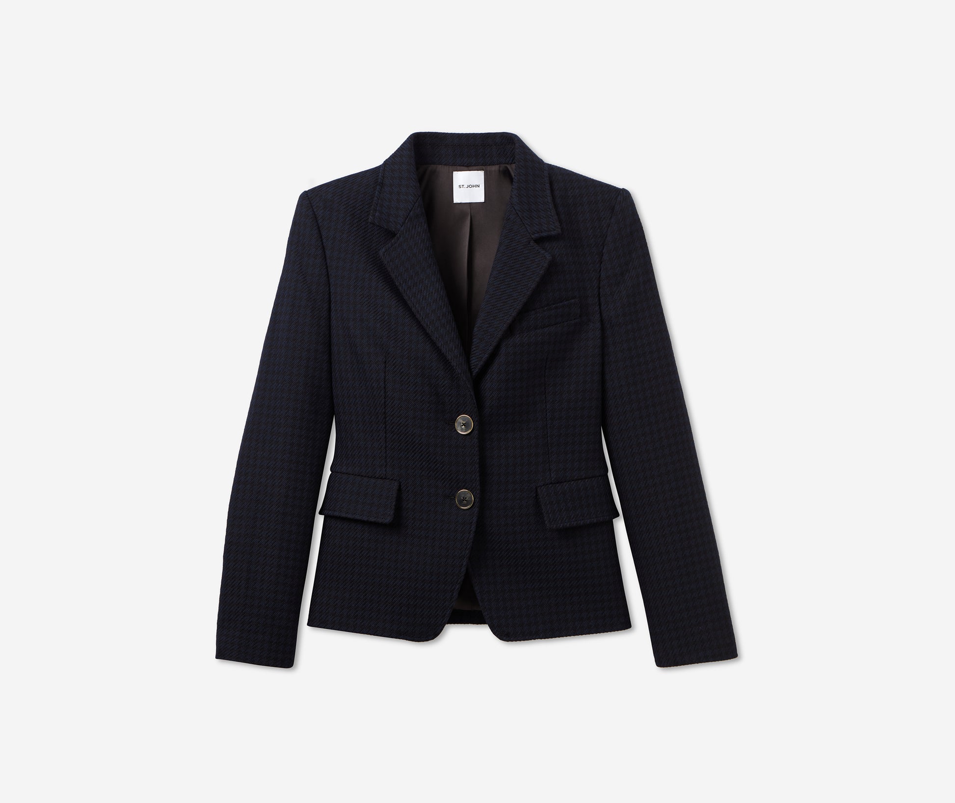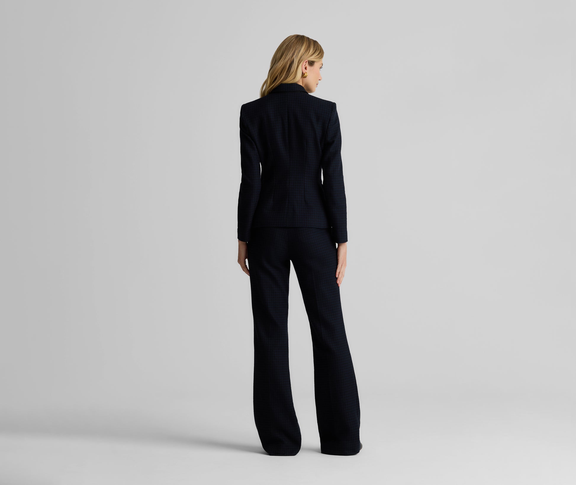 Crafted from our timeless Stretch Houndstooth in a classic Black/Navy palette, the Parker Jacket honors the heritage pattern’s past while giving it a modern update. With its expertly tailored silhouette, this jacket is an instantly iconic wardrobe addition that pairs with our Logan Pant for the chicest suit.