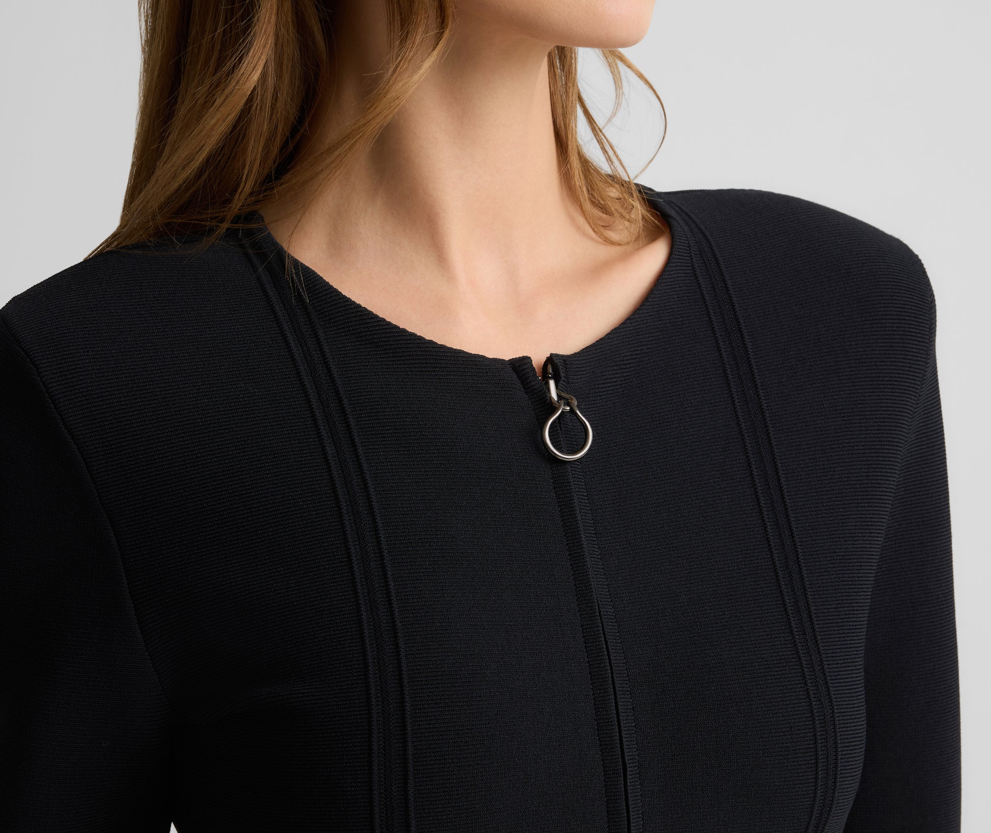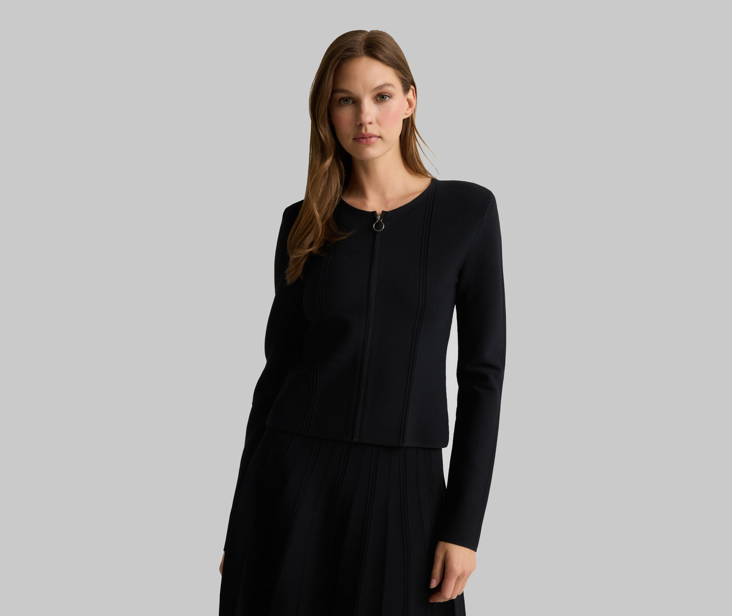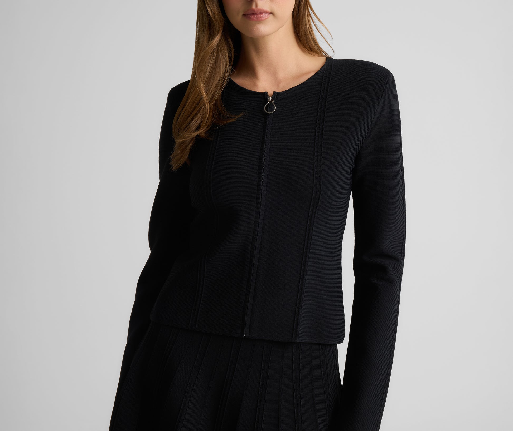 Crafted in our flexible Valley Knit and finished with architectural seaming, the Corinne is a sophisticated take on a classically sporty style. This jacket's sleek, flattering silhouette is easily dressed up with our coordinating Edith Skirt, but pairs just as effortlessly with denim for laid-back moments.