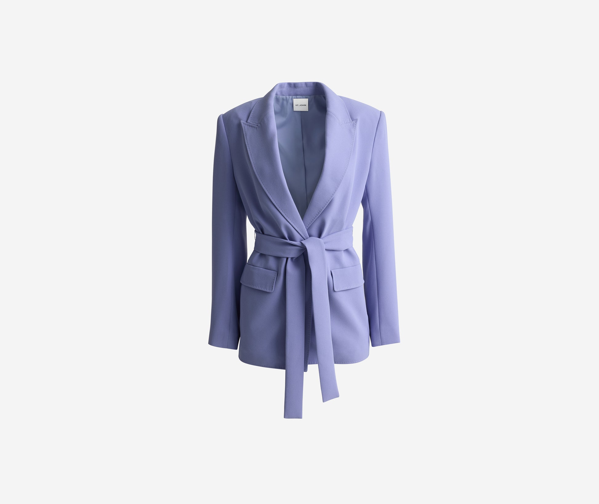 The Juliana puts a softer spin on traditional tailoring. Made from fluid Satin Back Crepe in soothing Iris to drape effortlessly on the body, this evening-ready jacket features a tie waist for the most flattering fit. Wear as a luxurious layer over formal dresses or pair with the matching Tabitha Pant for a graceful take on the tux.