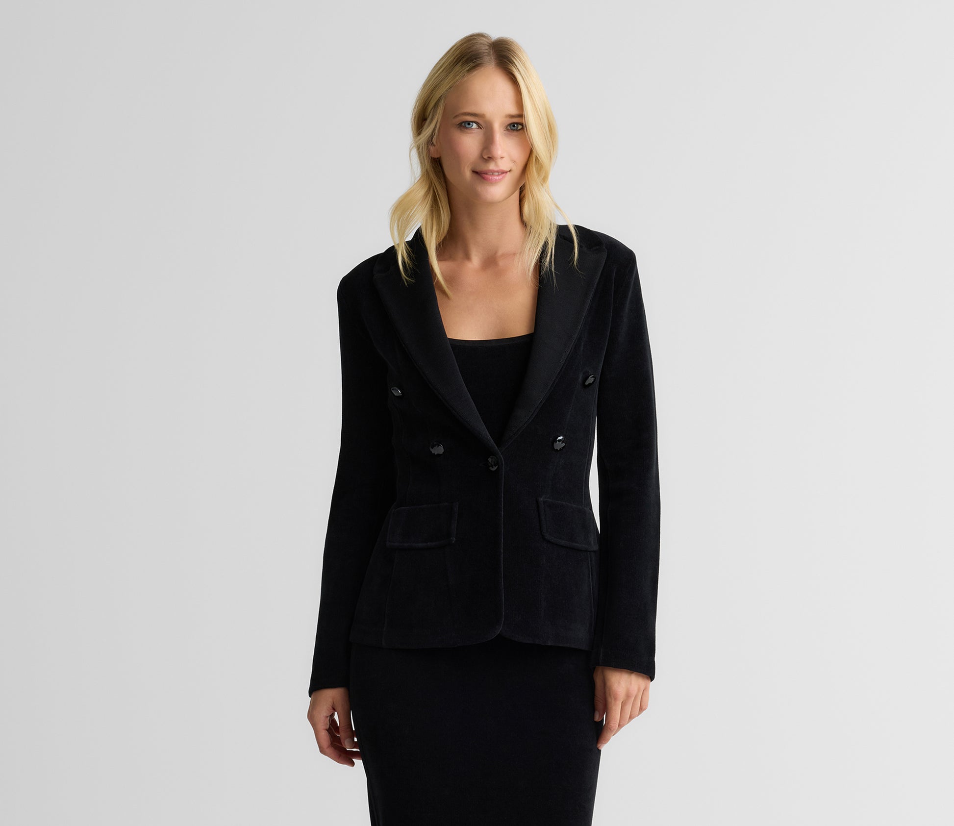 Plush, velvety Monte Carlo Knit offers a luxurious finish that moves through elegant affairs with ease. Layer over a bow blouse and pair with the coordinating Charlotte Pant for evening wear that’s cool and unexpected.