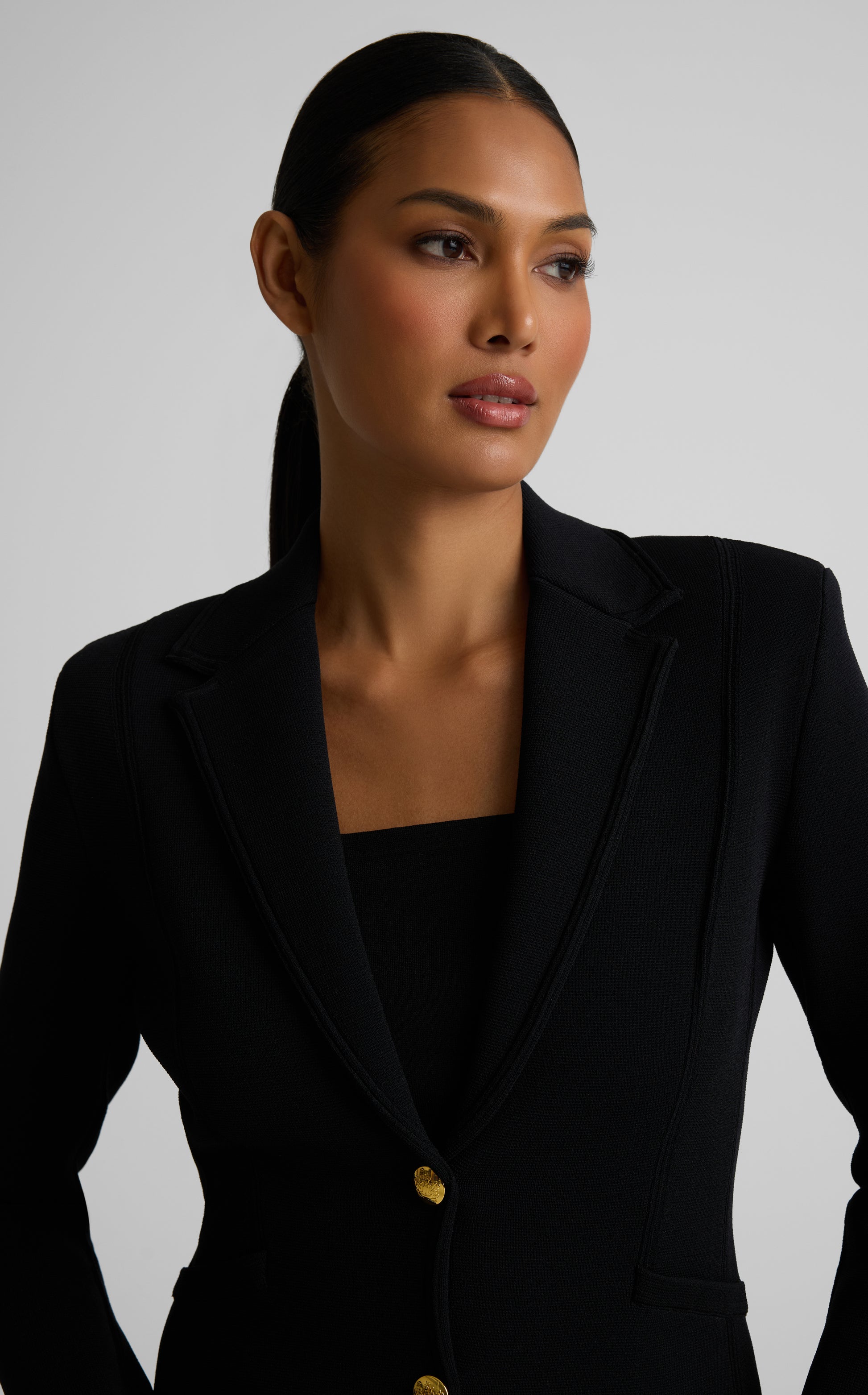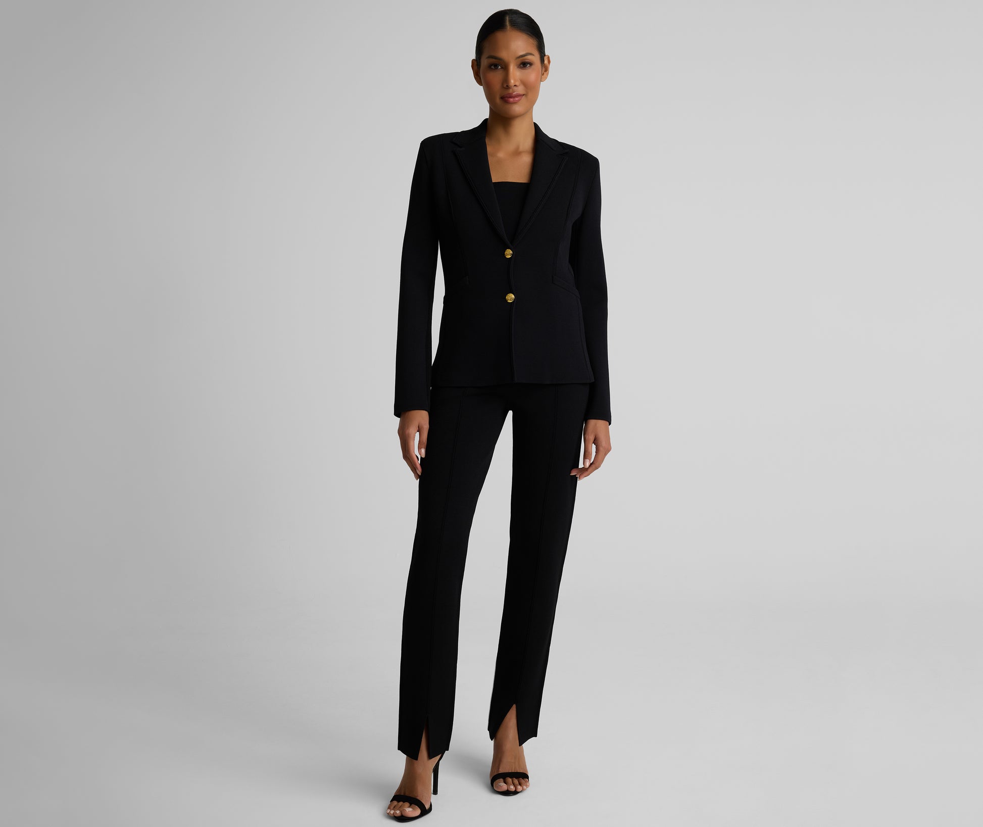 Tailored to perfection in our signature Santa Roma knit, the Erin Jacket offers the ideal balance of sharp lines and comfortable stretch. Its clean silhouette with subtle detailing redefines the idea of a classic jacket—versatile enough to be dressed up or down with ease. Layer it over dresses, tops, or trousers for a look that’s always impeccably refined.