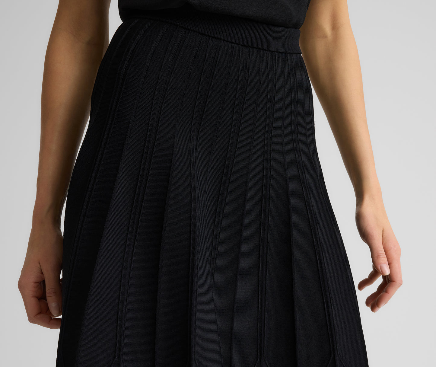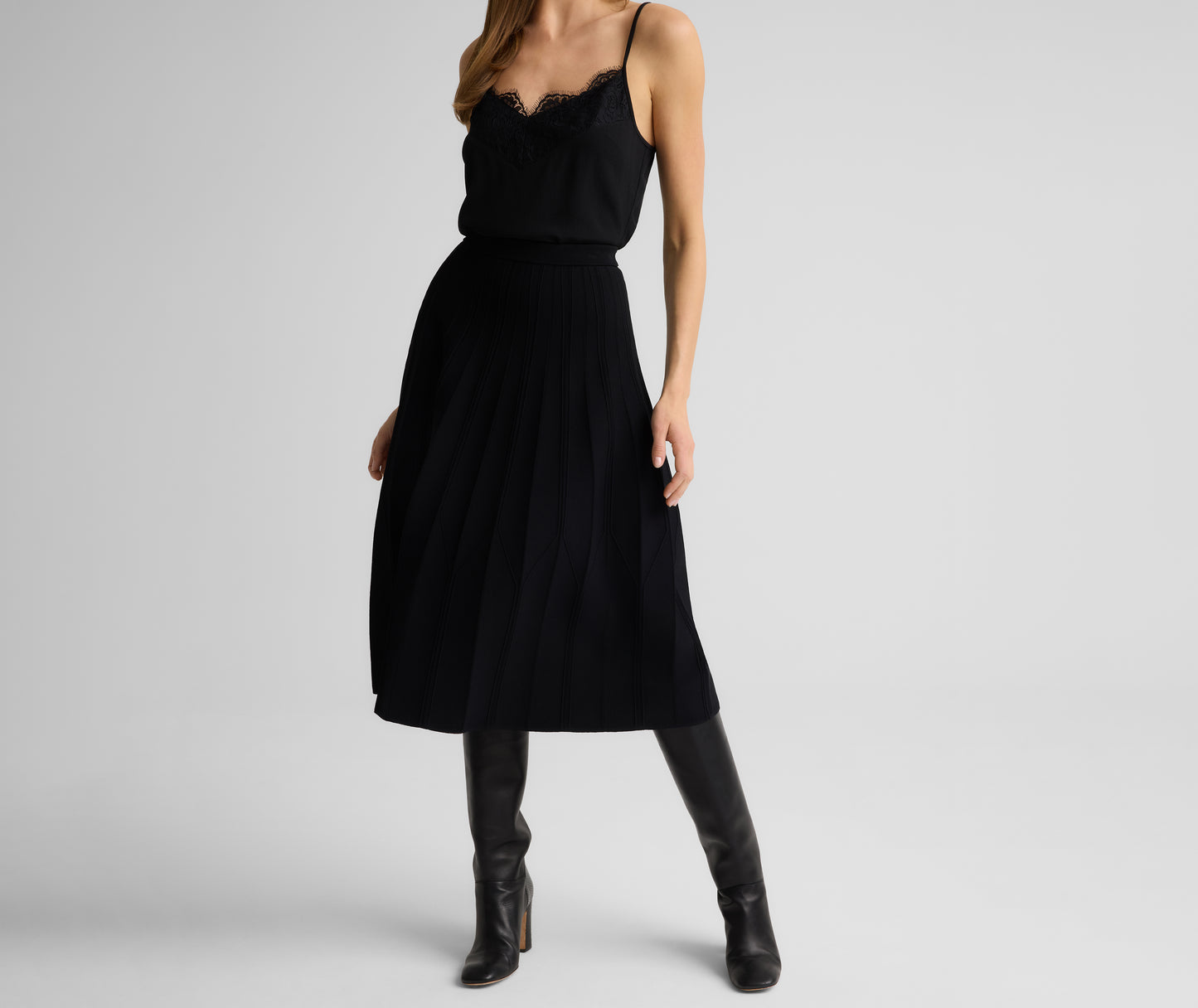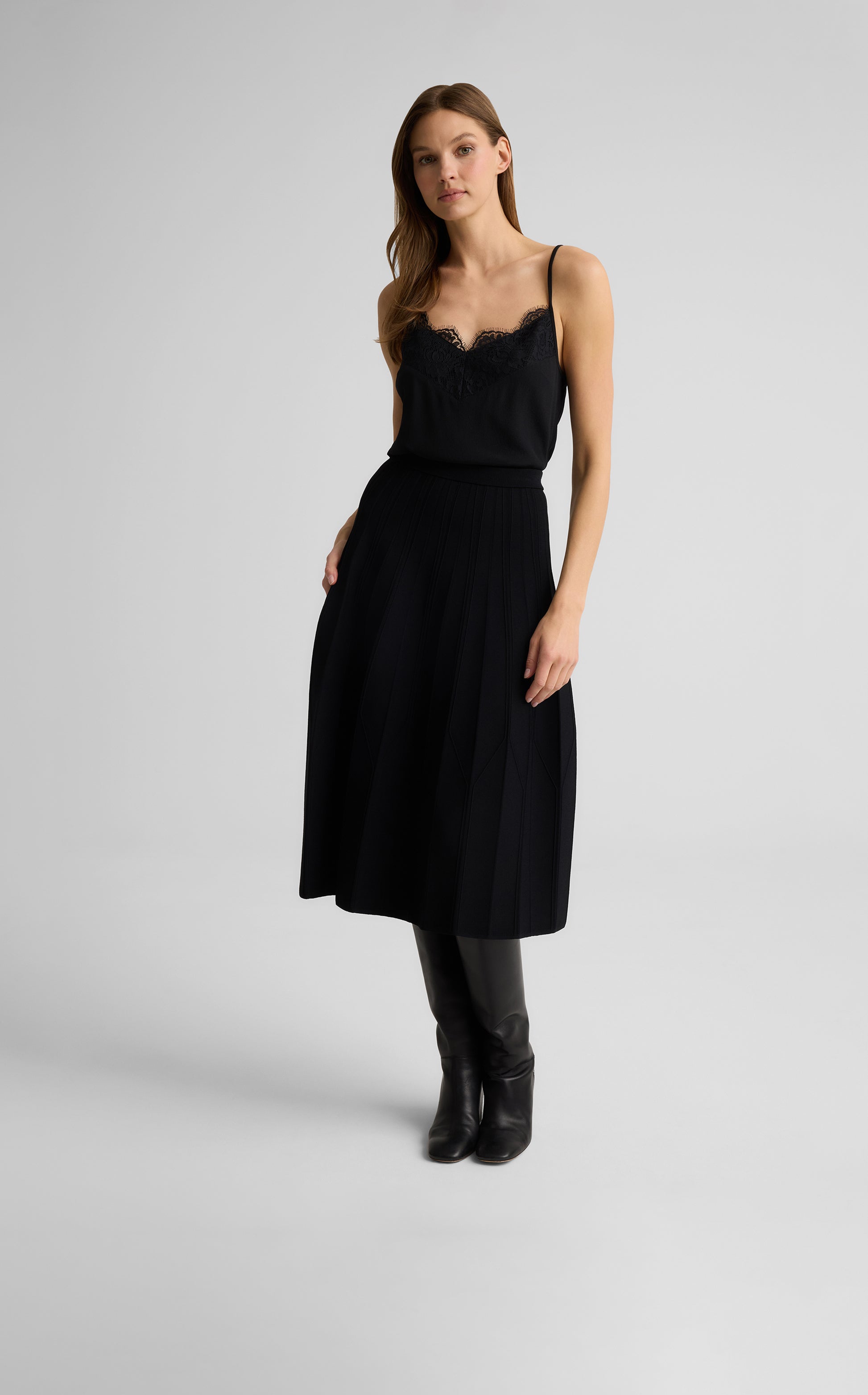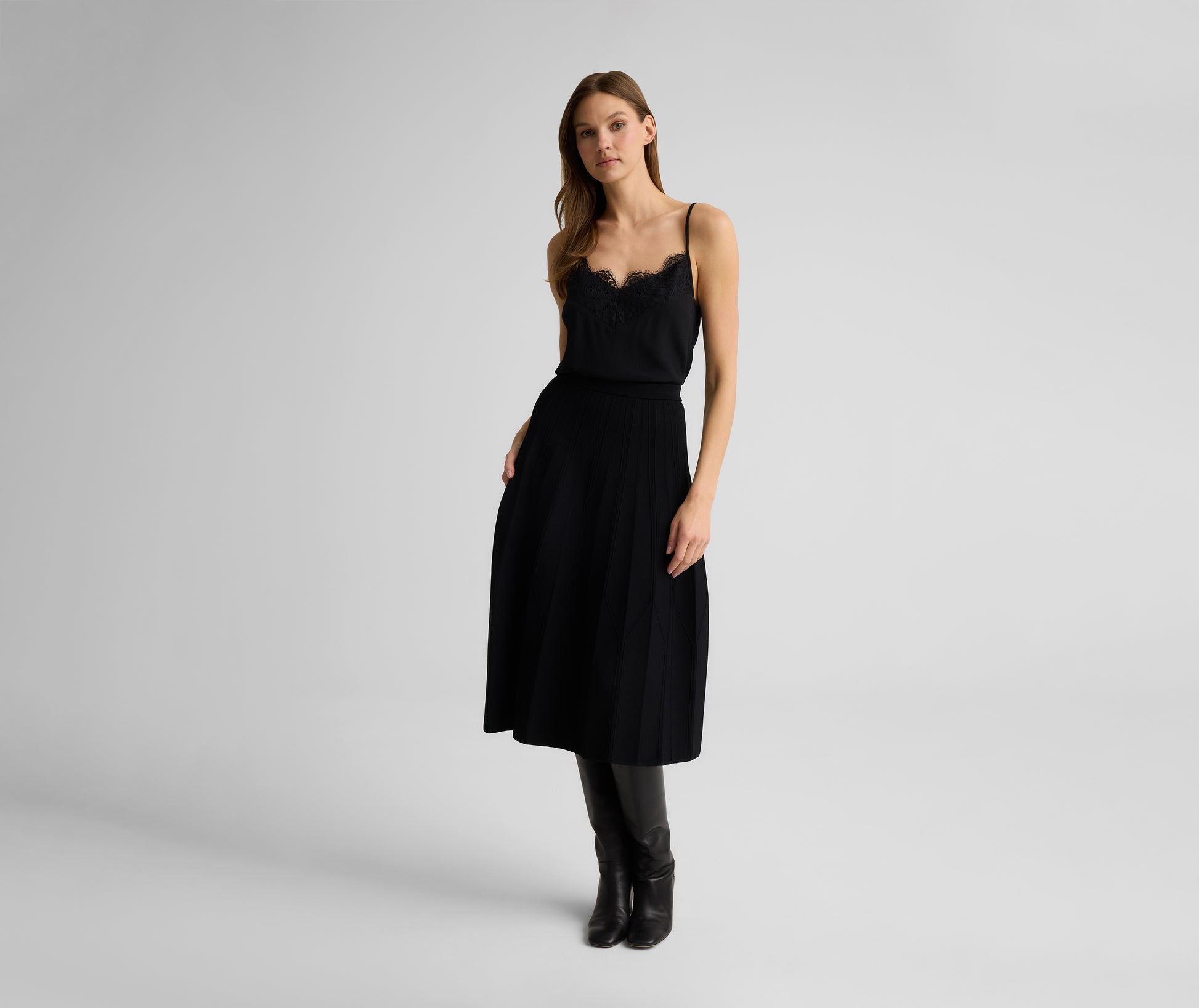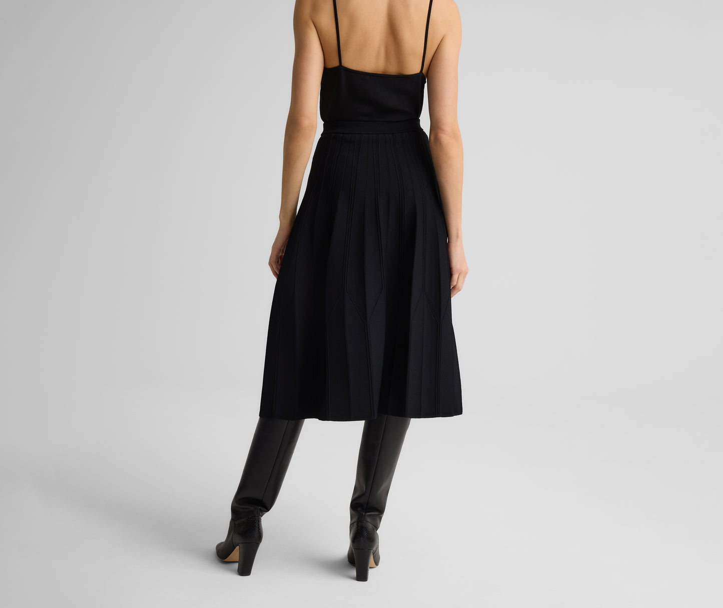 The Edith balances versatility with standout appeal. This boot-length skirt is cut from our refined Valley Knit in a timeless fit-and-flare shape and features intricate architectural seaming for added structure and dimension, making it a chic pairing with everything from tees and twin sets to our coordinating Corrine Jacket.