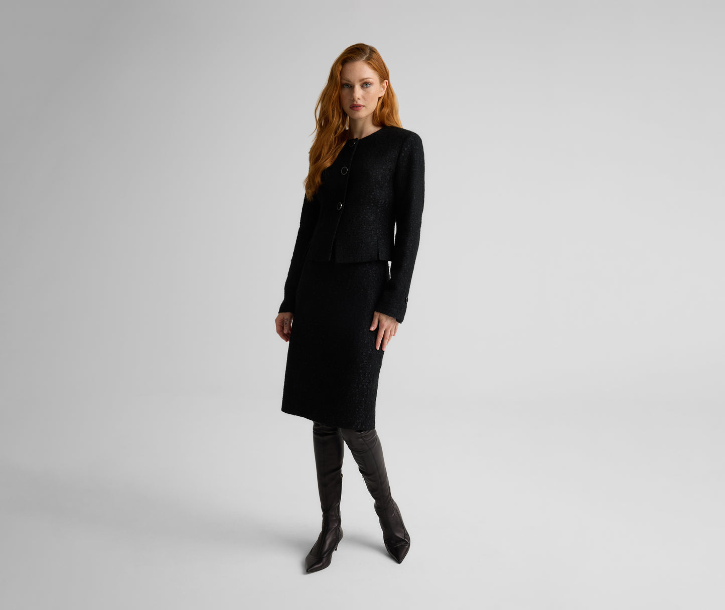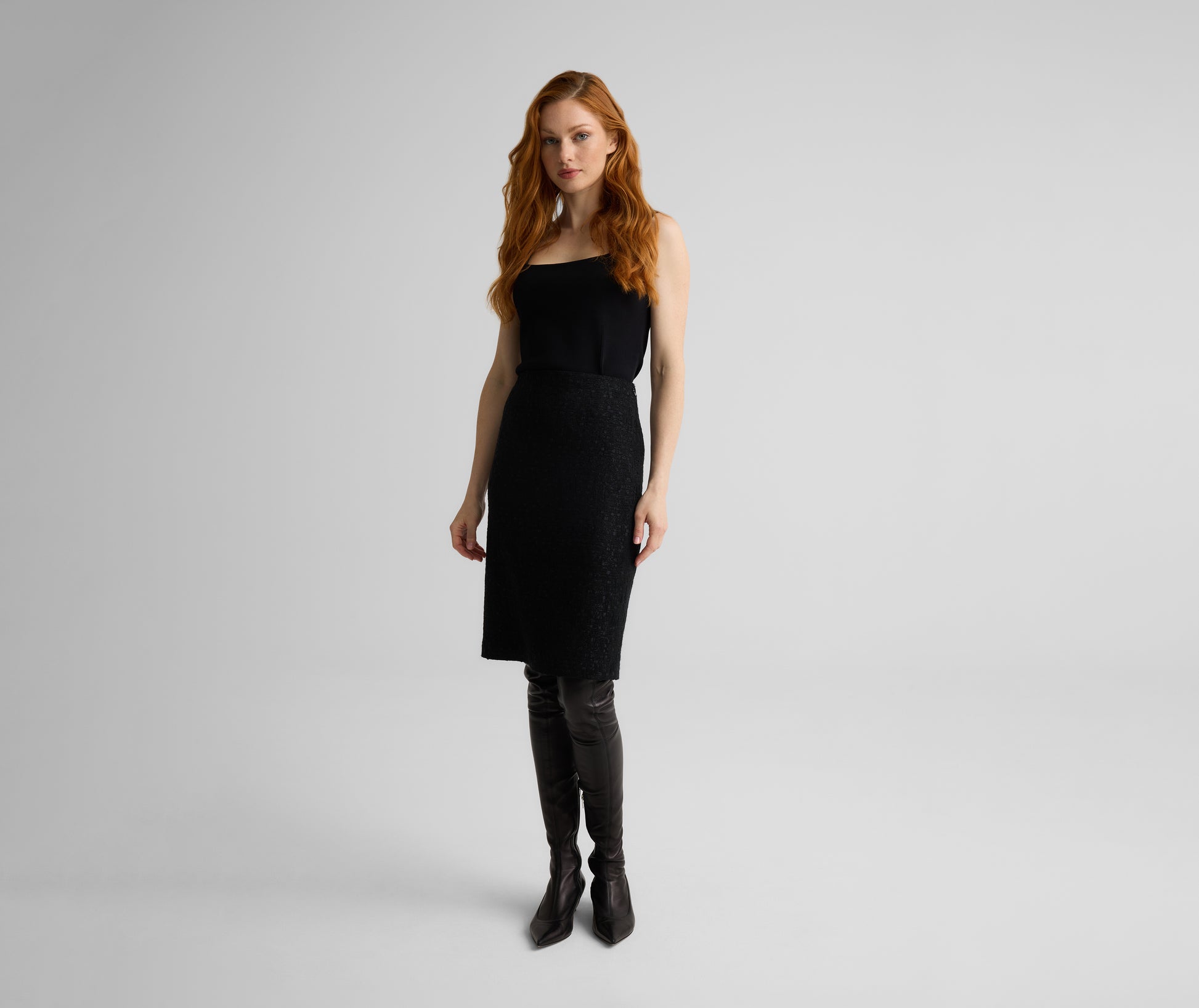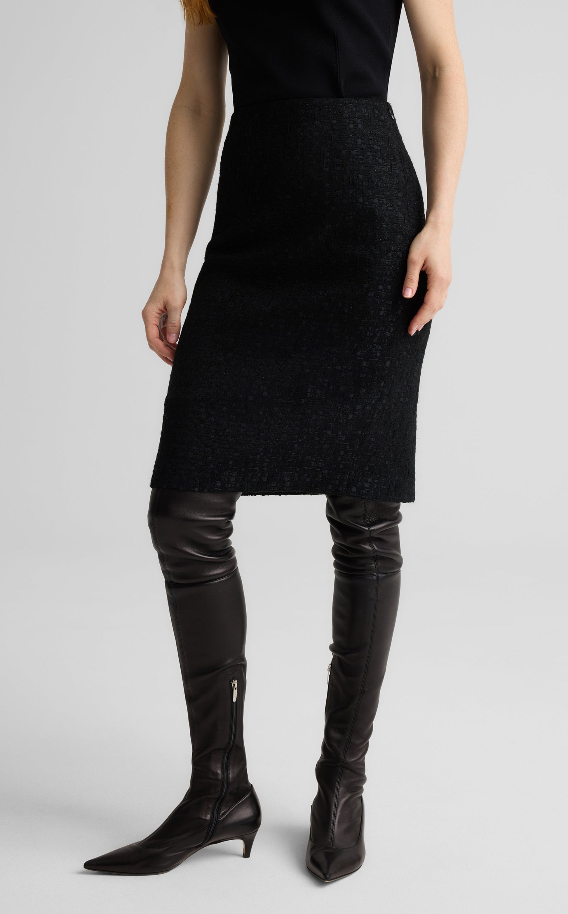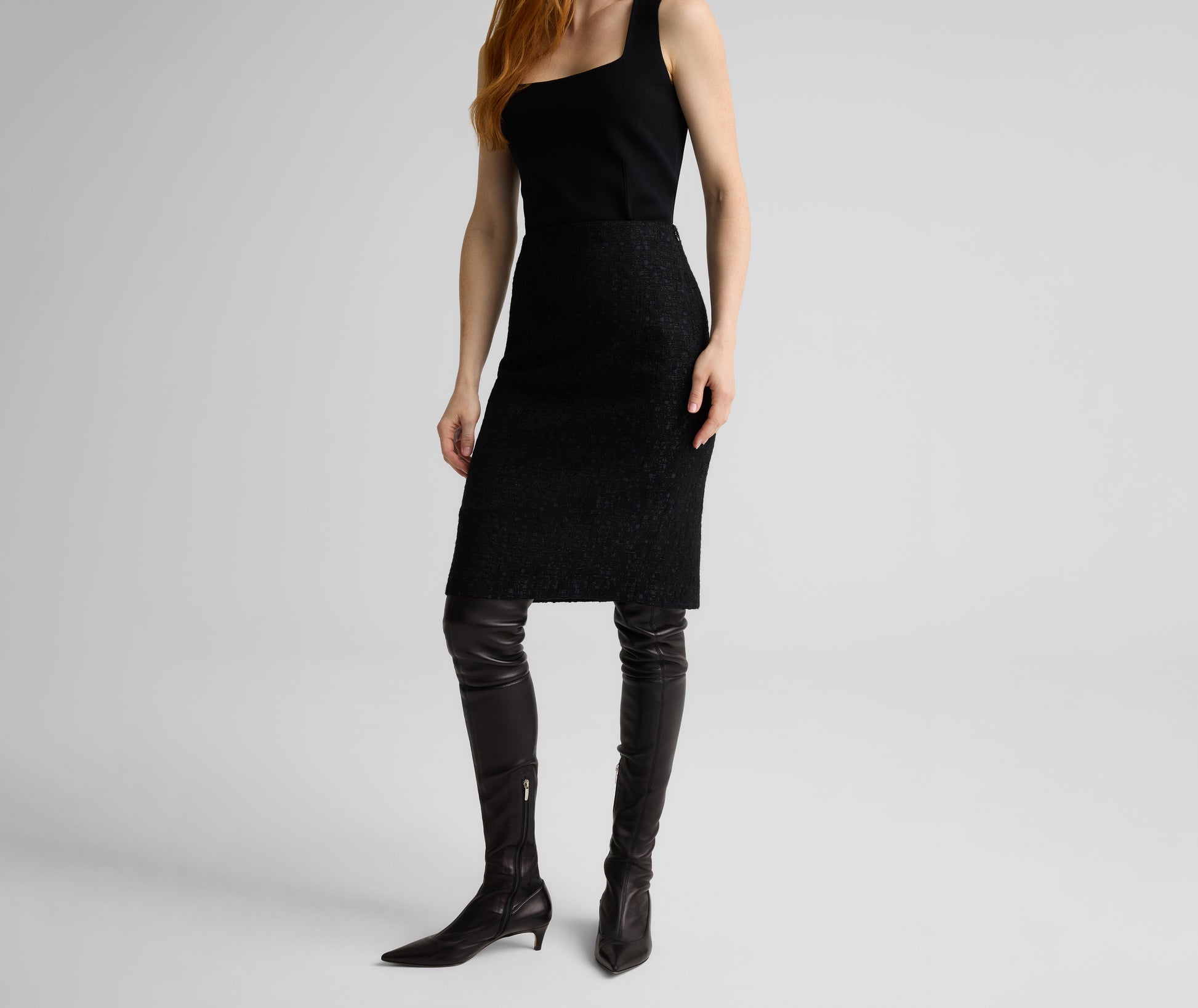 Cut from our signature Canyon Tweed, the Skylar puts a textured twist on the quintessential pencil skirt. Its straight silhouette is both sophisticated and flattering to offer you maximum wardrobe versatility. For the epitome of sophisticated style, wear as matching set with the Riley Jacket.