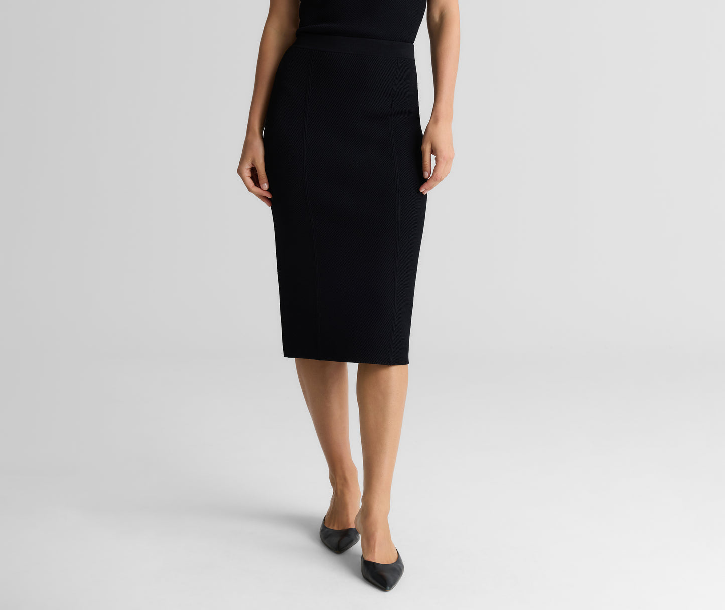 Sleek and timeless, the Sophia infuses the classic pencil skirt with a touch of ease. Subtly textured Venezia Knit creates a contoured fit that pairs perfectly with the Marie Jacket, but works just as well with softly draped blouses and cropped cardigans.