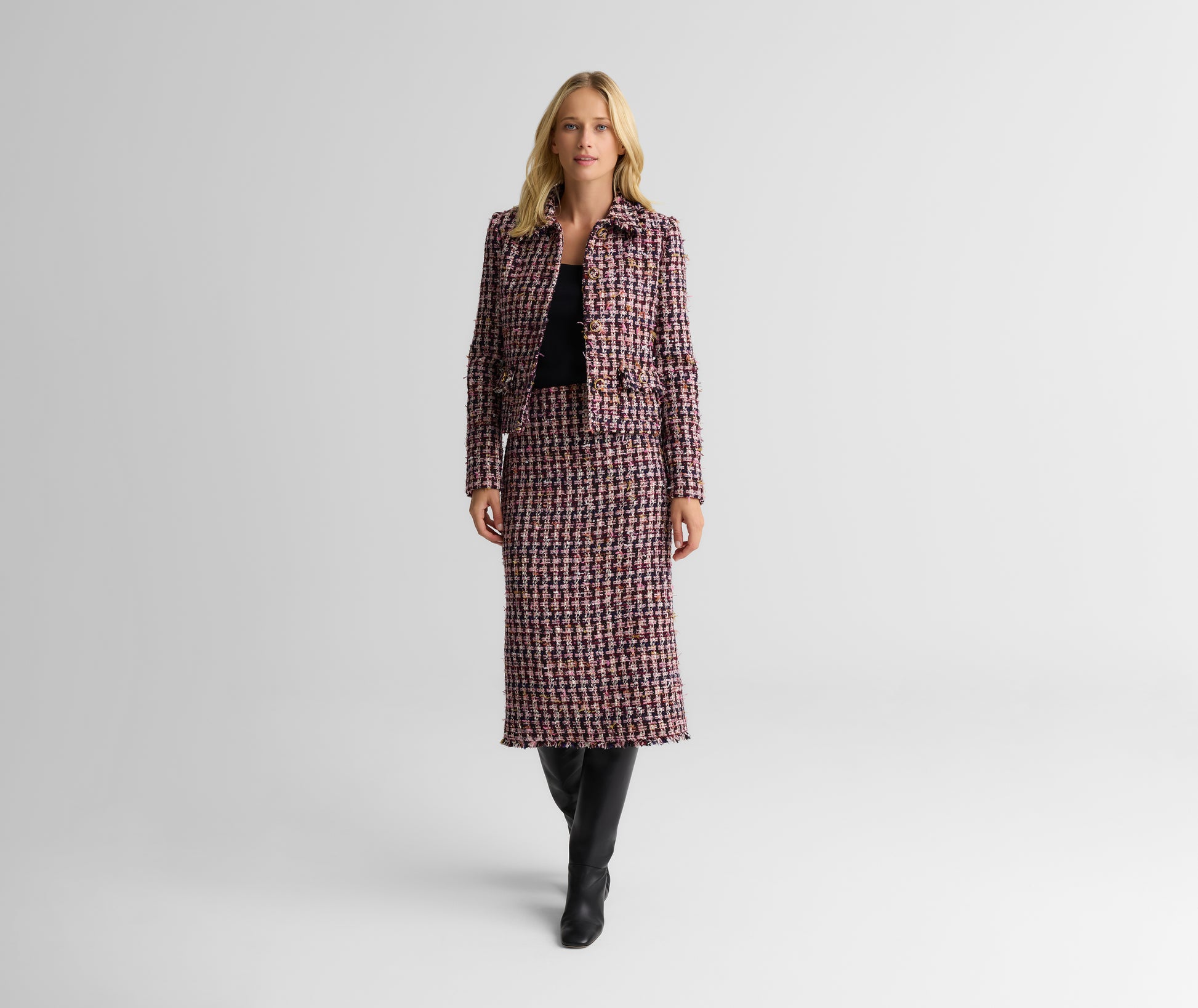 A versatile staple with standout appeal, the Margot is cut from fluttery Lachman Tweed in a classic silhouette. With its high rise, midi length, and form fitting shape, it was designed to elevate everything from bow blouses to sleek blazers while also pairing perfectly with the Bristol Jacket to create a coordinated set.