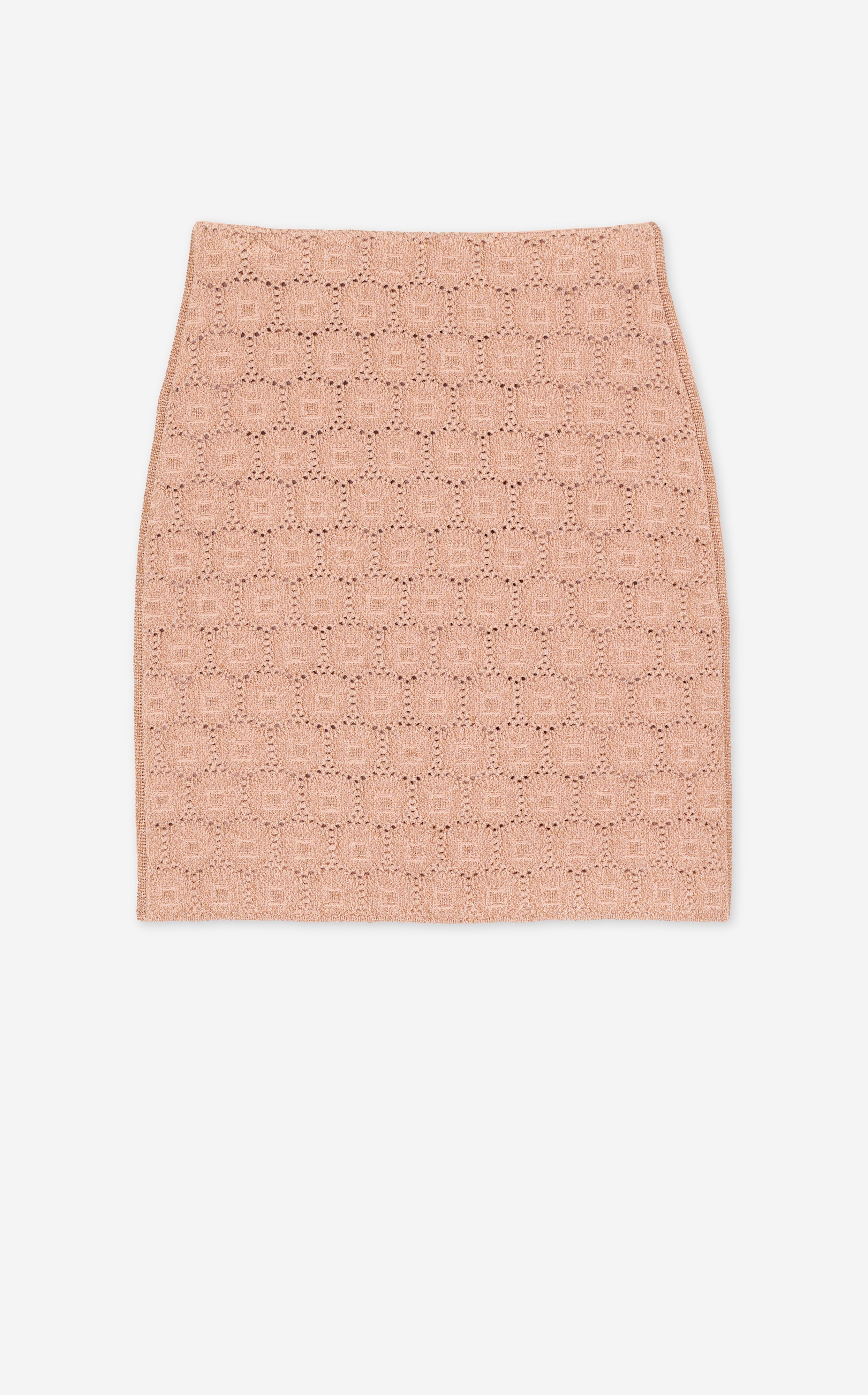 Elevate your style with our Lurex Pointelle Knit Skirt, featuring a dazzling touch of shimmer and 'Entre Deux' trim detail for a chic and sophisticated look that seamlessly blends comfort and glamour.