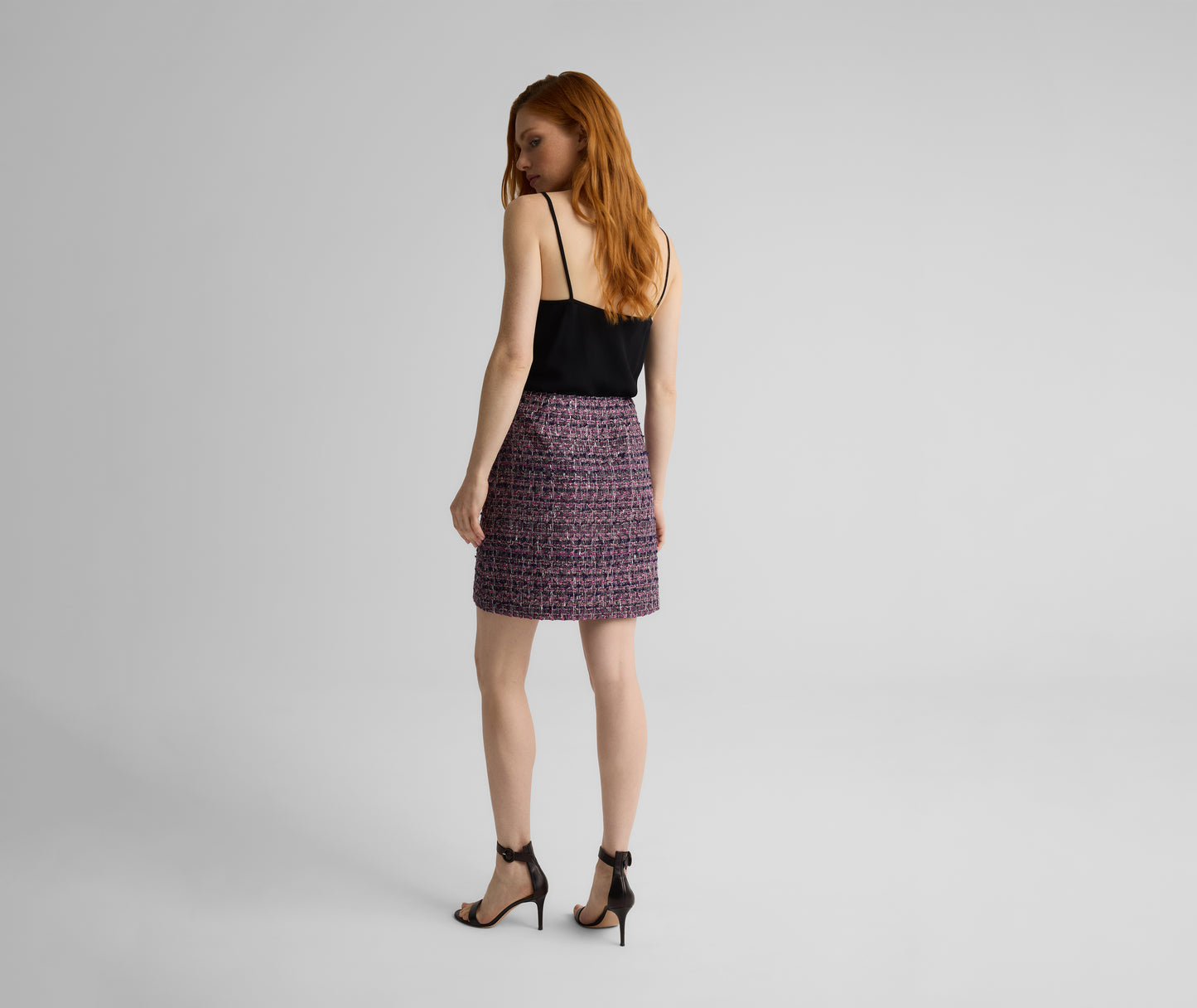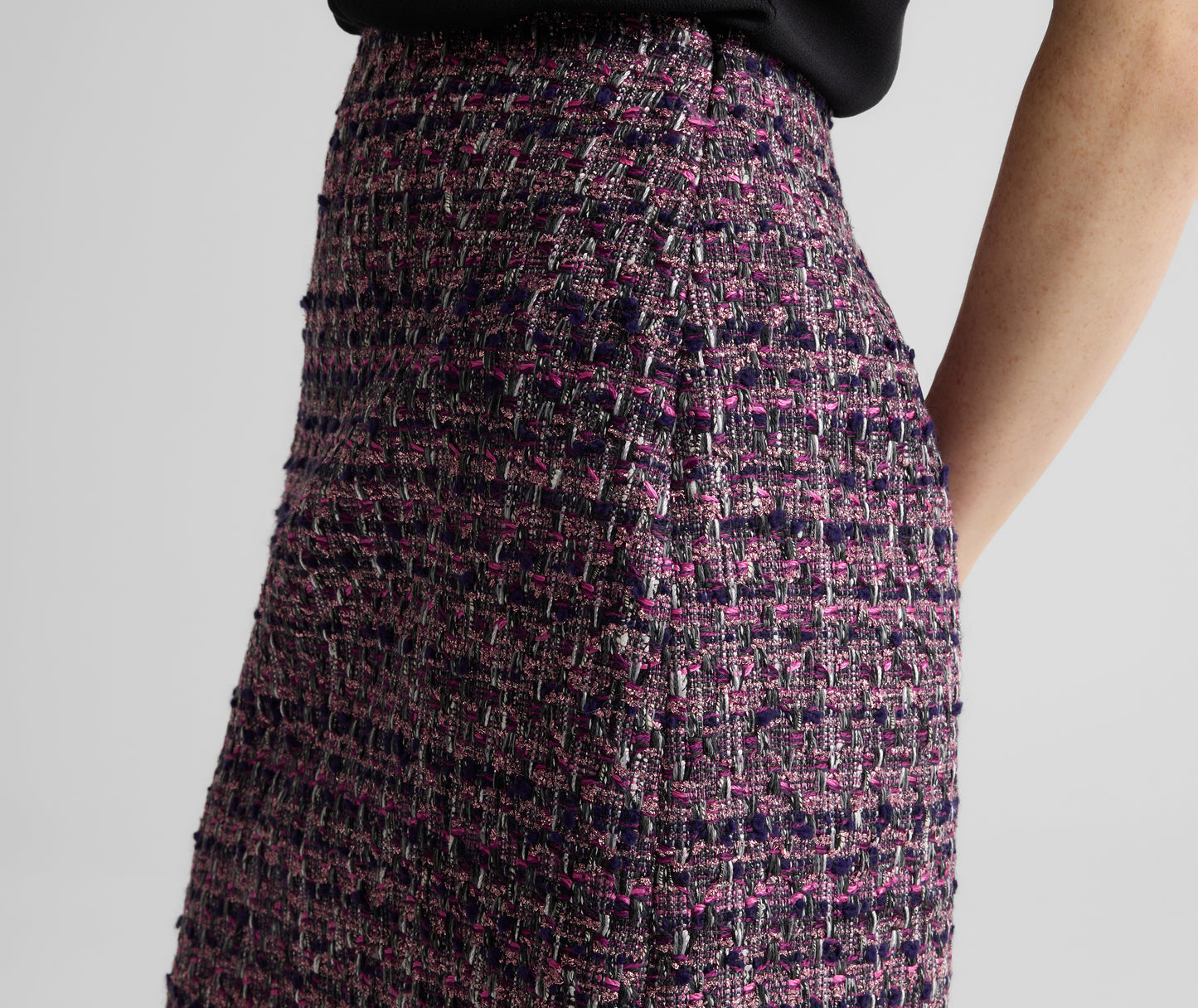 A subtle hint of metallic sheen makes the Stella an instant wardrobe standout. Cut from uniquely textured Larchmont Tweed, this straight, above-the-knee length skirt looks luxurious as an evening wear set with the coordinating Lennie Jacket, but also adds a touch of refinement to contrasting separates like a sleek blazer or silk blouse.