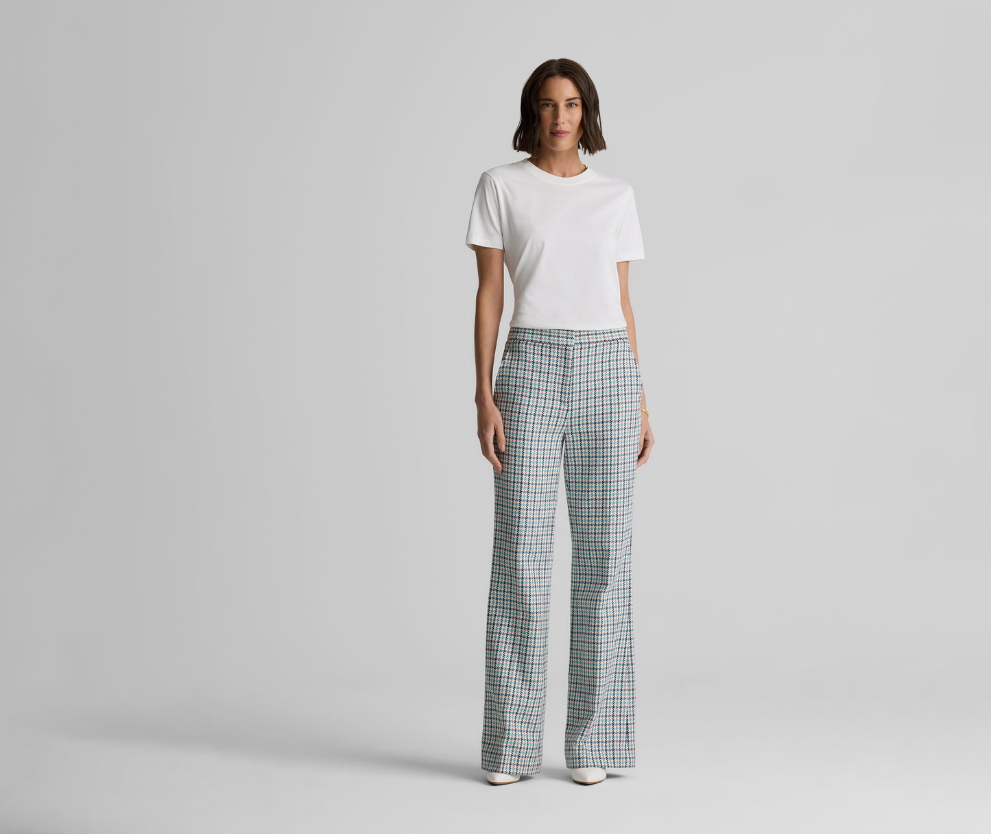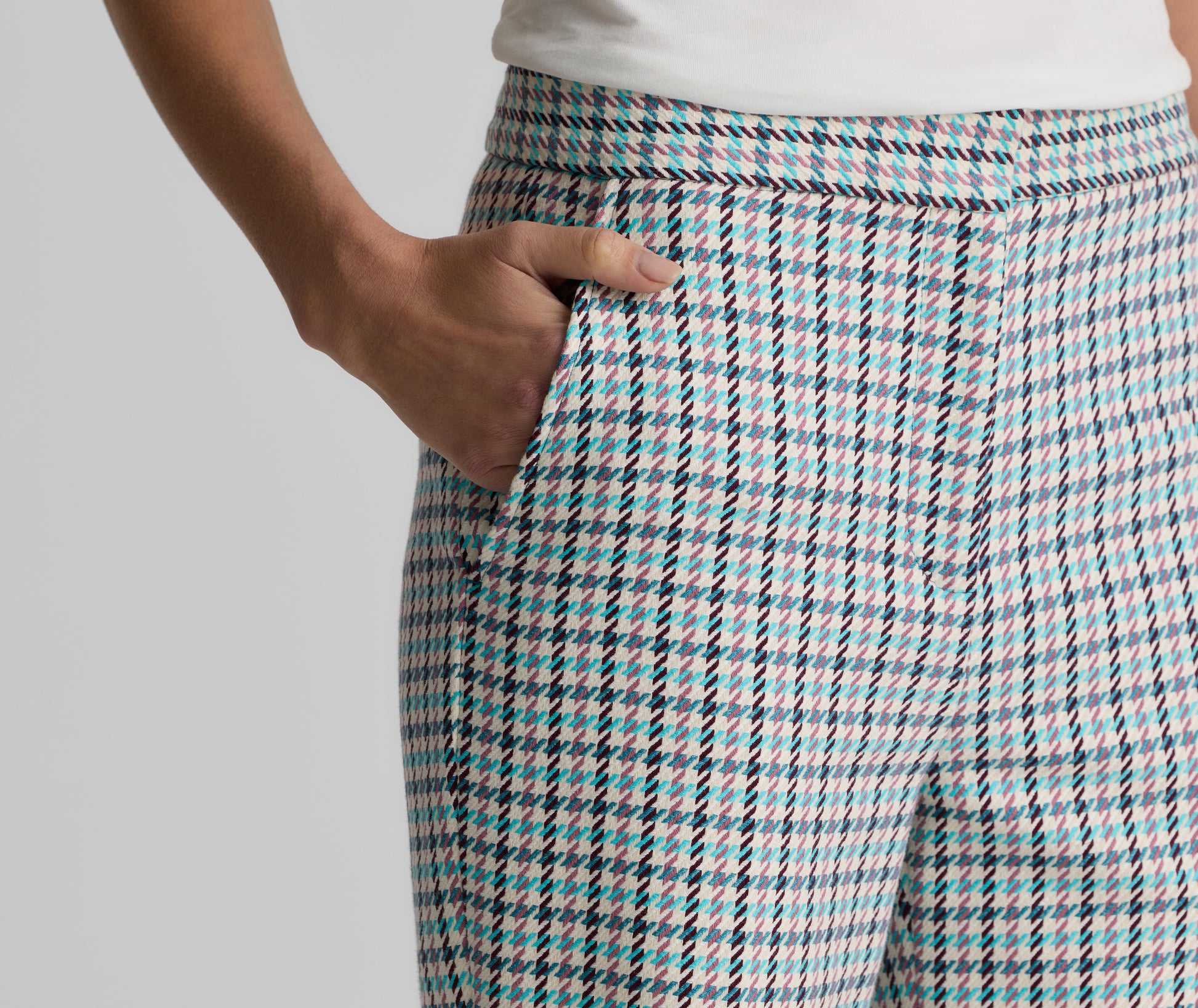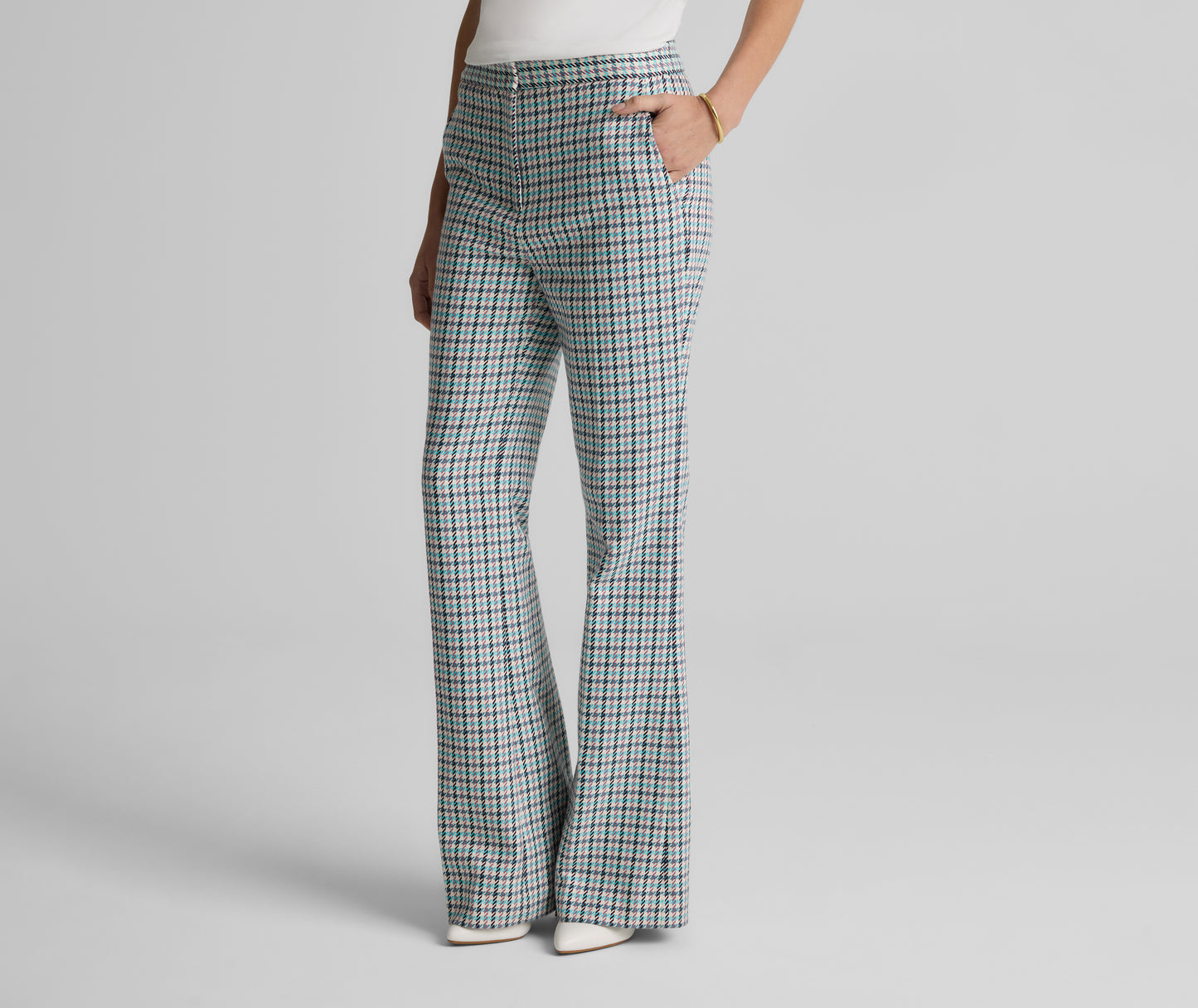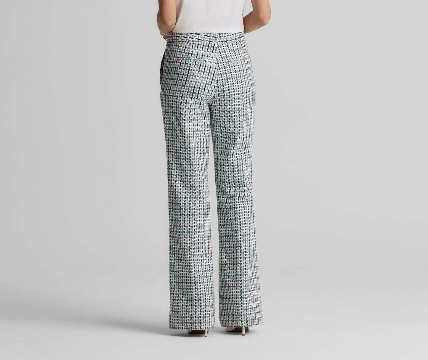 Heritage houndstooth gets a modern twist with the Logan Pant in a vibrant Blue/Ivory Multi palette. Made from a comfortable stretch fabric for effortless, all-day wear and designed with a clean waistband, slash pockets, and a slightly flared leg to create a crisp look. These flattering trousers can be mixed and matched, or worn with our Parker Jacket or Sloane top for the ultimate coordination.
