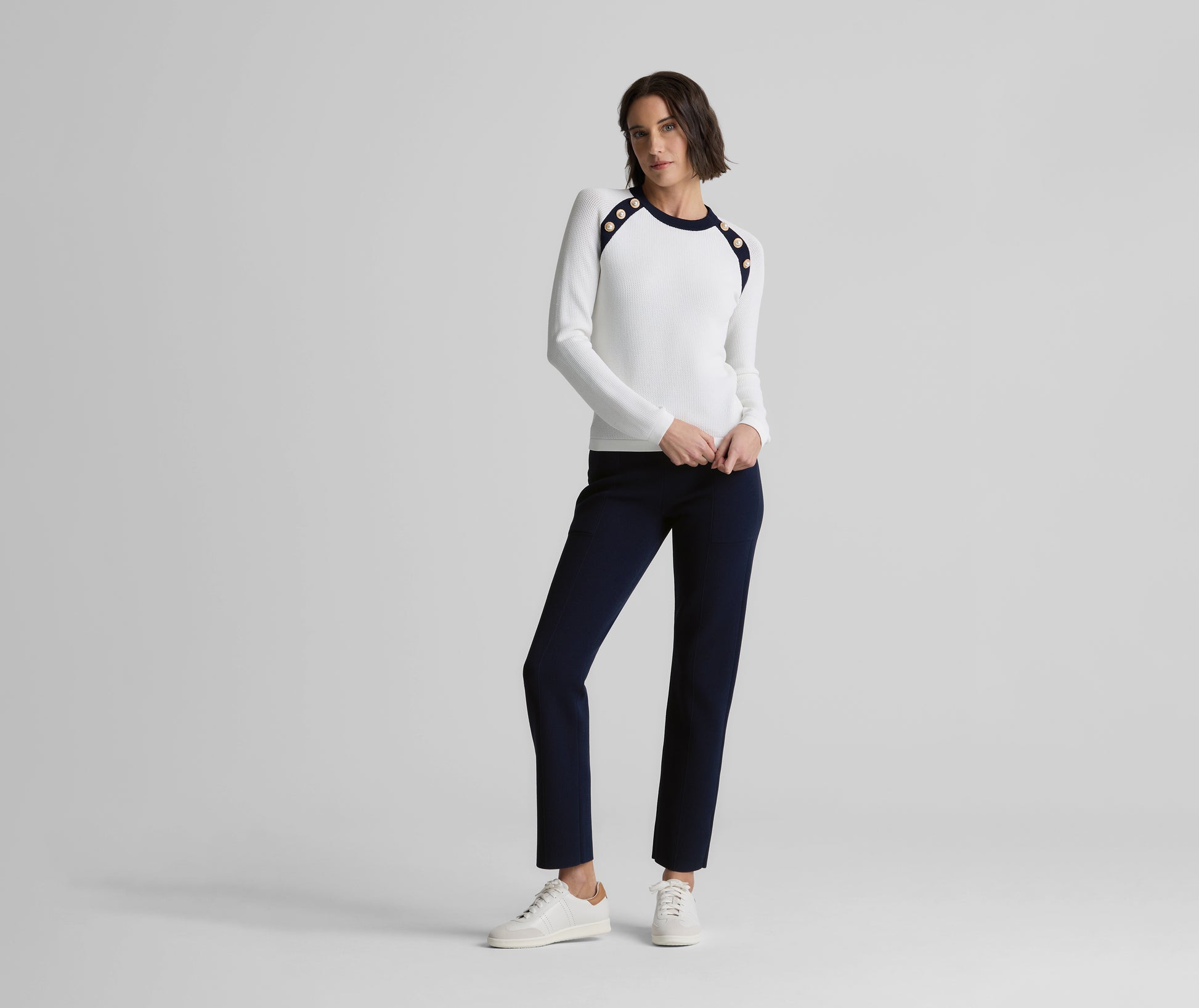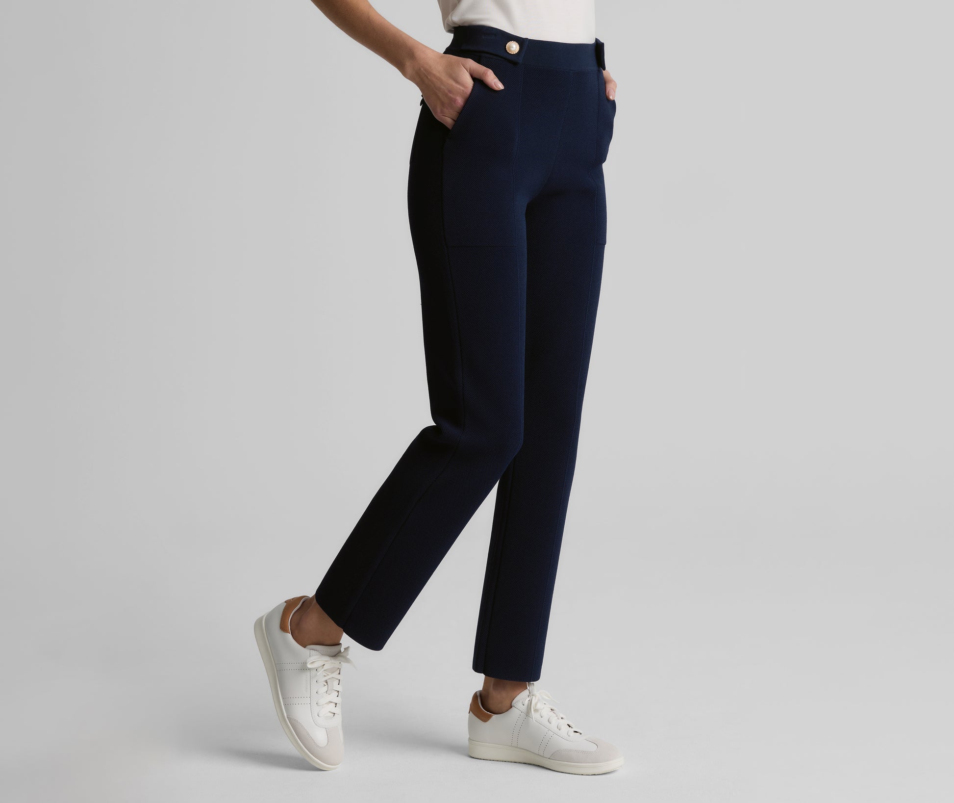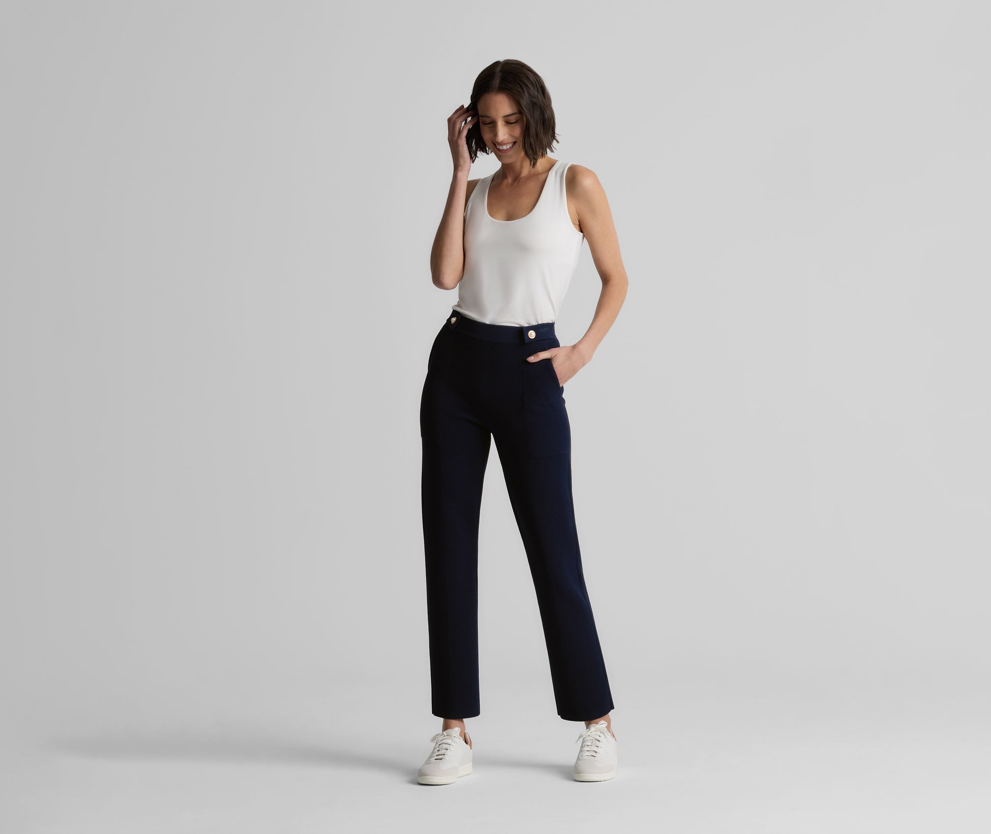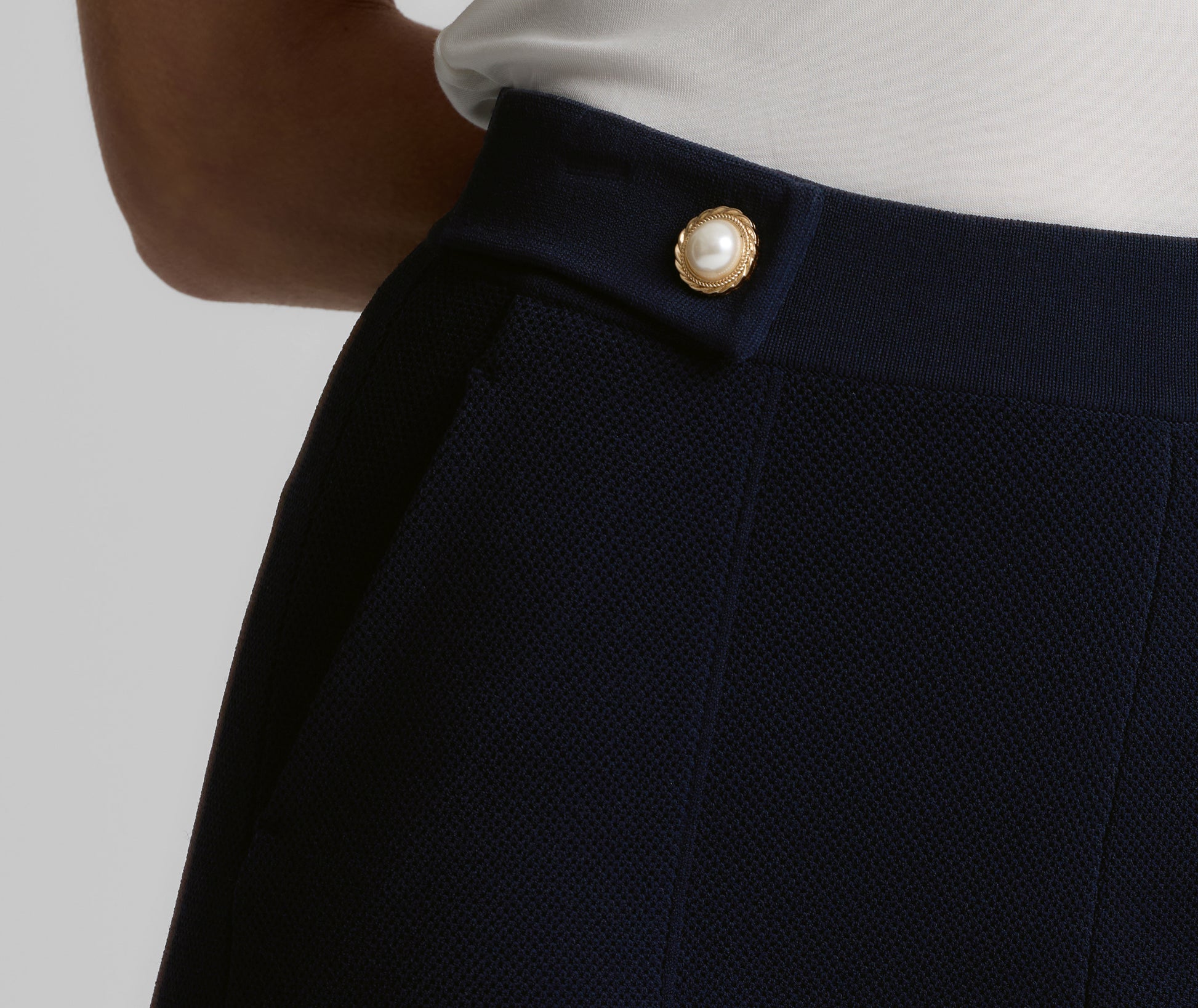 Created in an exclusive collaboration with influential golf brand Malbon, the Jane in classic Navy elevates classic athletic wear through refined design details. These slim fitting pants are made from a pique knit to accommodate your every move while keeping its polished look, plus they’re dressed up with pearl buttons at the waist for subtle glamour.