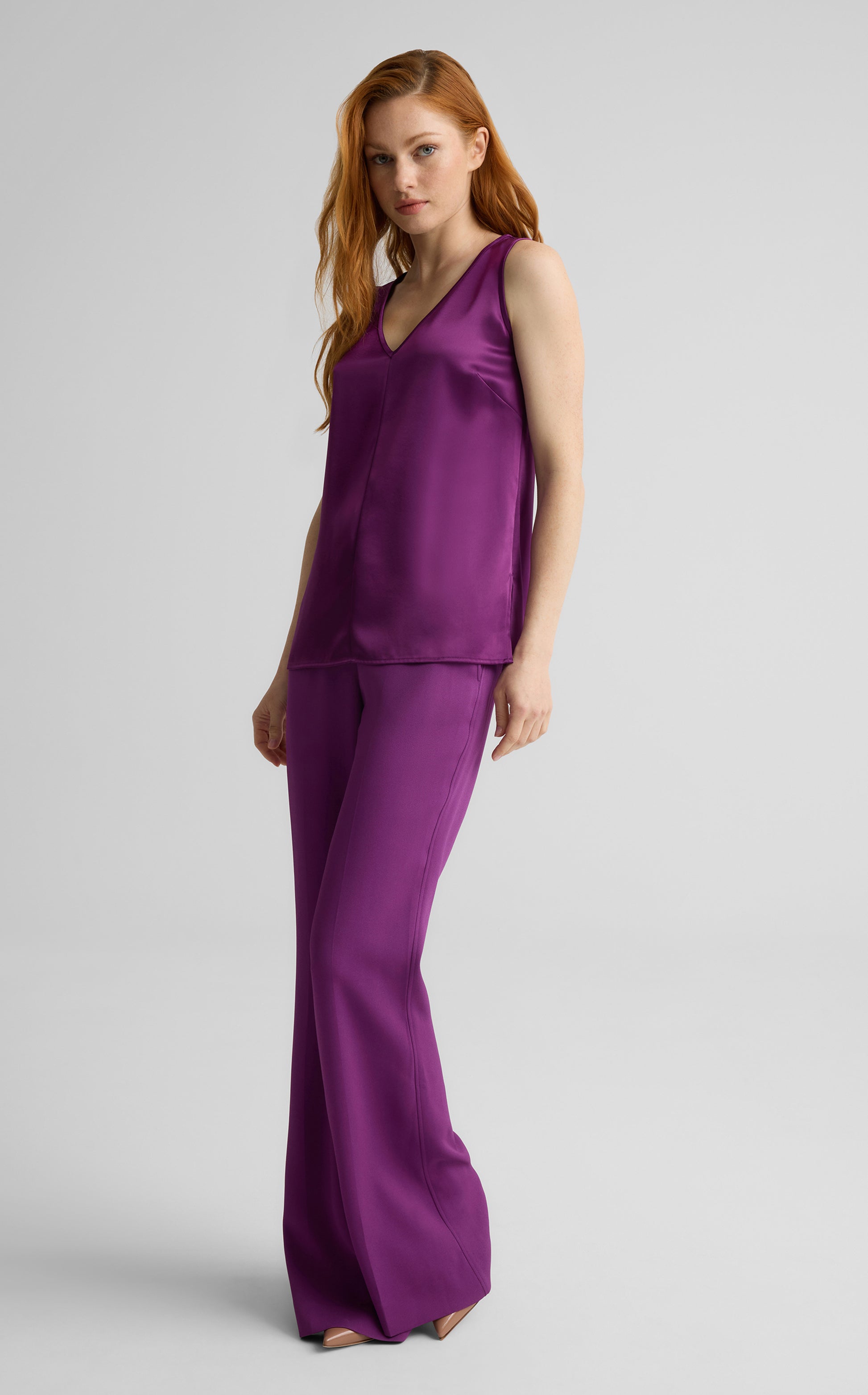 Expertly cut from our luxurious Liquid Satin in rich Boysenberry, the Vera Top adds a signature sense of sophistication to any ensemble. This elegant top features a classic sleeveless silhouette and flattering V-neckline that's a dream for dressing up your favorite denim or adding a soft, slinky layer under your go-to suit.