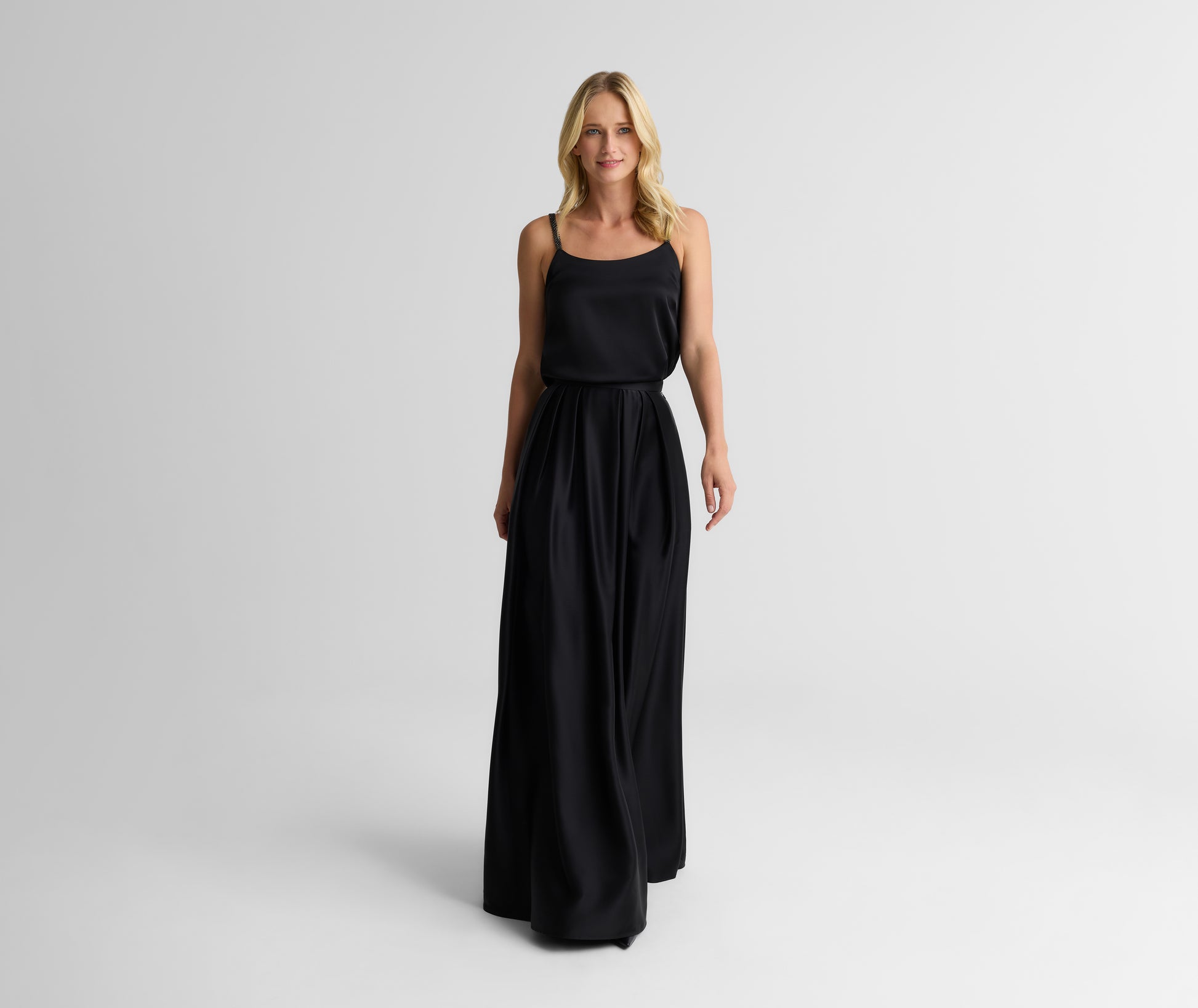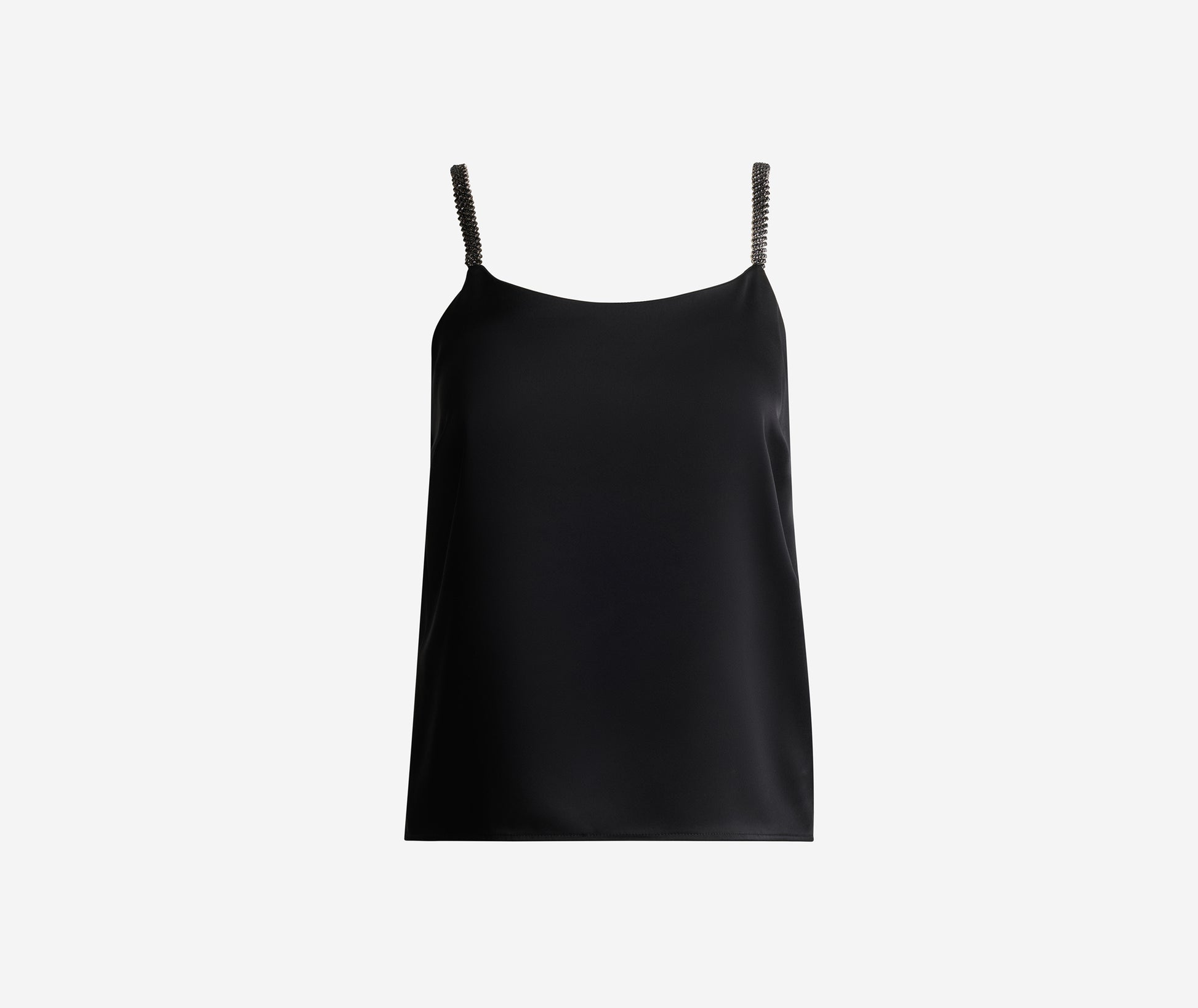 Alluring yet sophisticated, the Alice was designed to add a subtly seductive touch to everything from denim to suits to bias cut skirts. Sumptuous liquid satin in classic Black gives this camisole its elegant drape, while rhinestone embellished straps provide a delicate flash of shimmer.