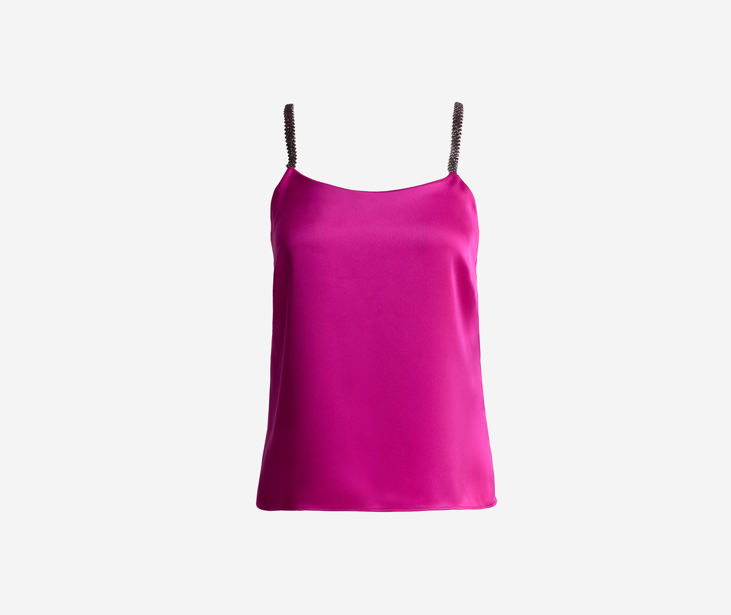 Alluring yet sophisticated, the Alice was designed to add a subtly seductive touch to everything from denim to suits to bias cut skirts. Sumptuous liquid satin in vibrant Hot Pink gives this camisole its elegant drape, while rhinestone embellished straps provide a delicate flash of shimmer.